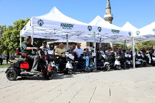 Engellilerin yaşam kalitesini yükseltmek ve sosyal hayata daha aktif katılımlarını sağlamak için bugüne kadar pek çok proje ile çalışma yürüten Karatay Belediyesi, engelli vatandaşlar için temin edilen akülü engelli aracı hediye etti.