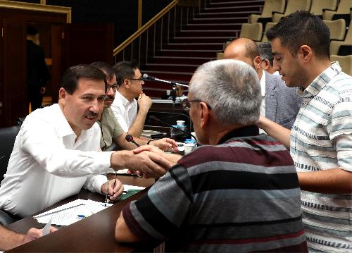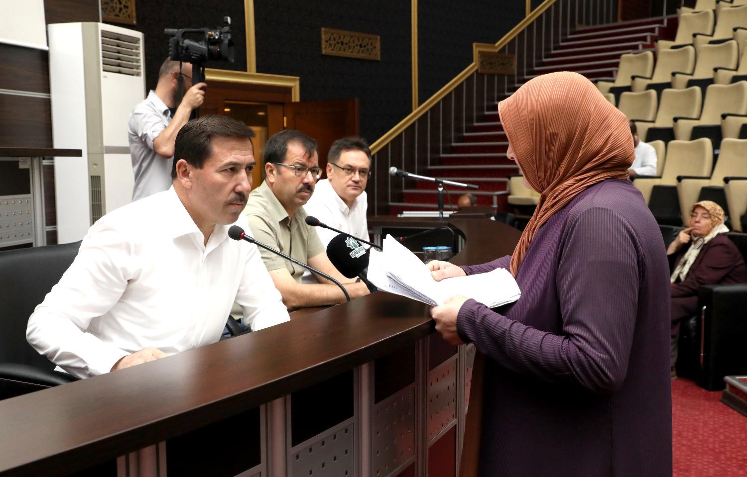 Karatay Belediyesi Meclis Salonu’nda gerçekleştirilen buluşmada hemşehrilerinin sorunlarını ve taleplerini tek tek dinleyerek notlar alan Başkan Hasan Kılca, çözüm için vatandaşlar ve belediye başkan yardımcıları ile birim müdürlerine gerekli talimatları verdi.