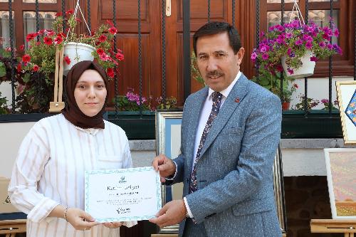 Program sonunda Karatay Belediye Başkanı Hasan Kılca ve katılımcılar, kursiyerlerin el emeği göz nuru eserlerinden oluşan sergiyi gezdi.