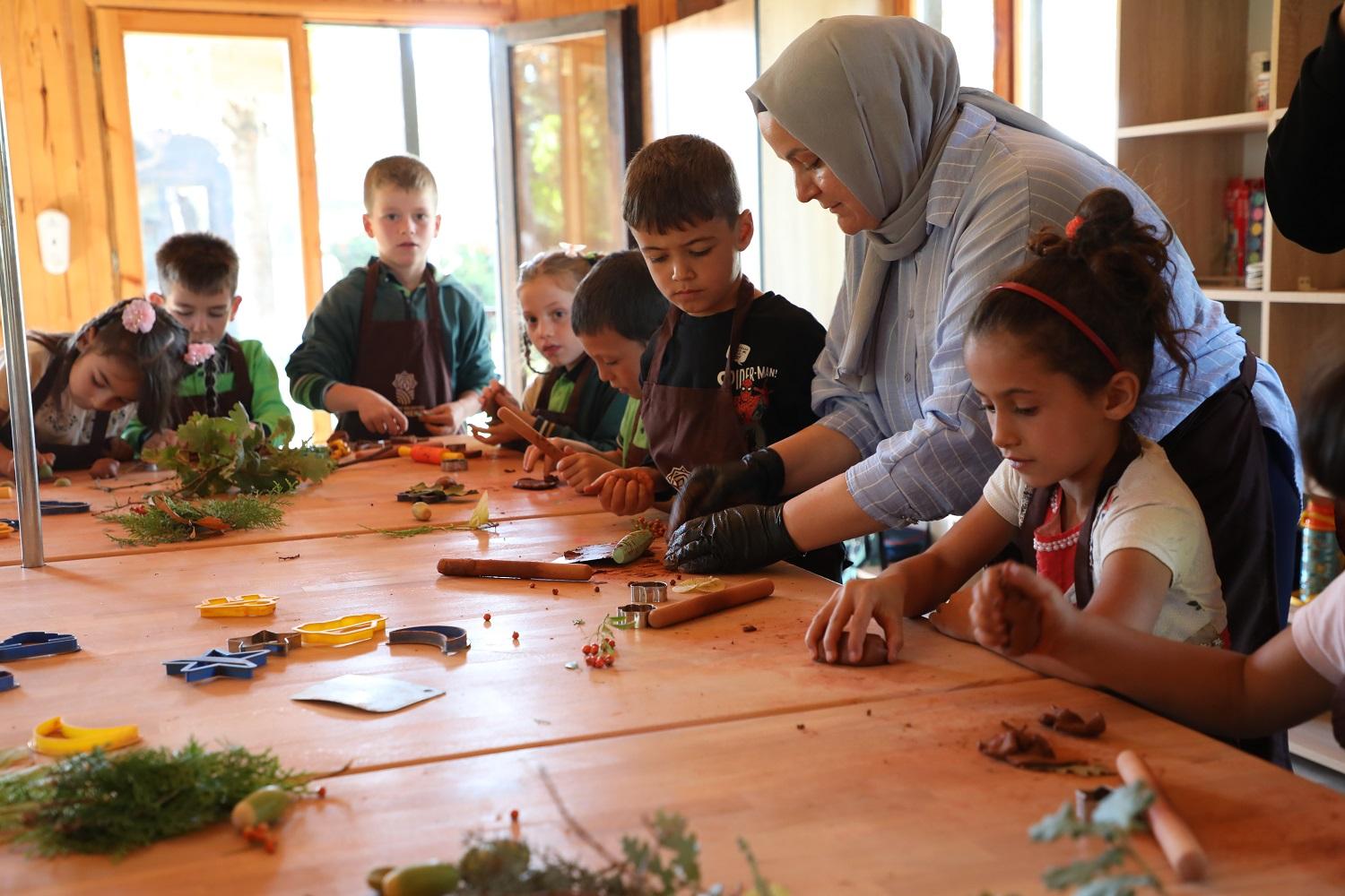 Karatay İl Milli Eğitim Müdürlüğü işbirliğiyle yürütülen proje kapsamında; Karatay Tabiat Mektebi’nde ahşaptan oluşturulan Doğal Yaşam ve Gıda Atölyesi, Kil Atölyesi ve Ahşap Atölyesi’nde temel yaşam becerileri, poğaça, kurabiye, simit kek, kil yapımı, ahşaptan topaç yapımı ve daha birçok etkinlik gerçekleştiriliyor.