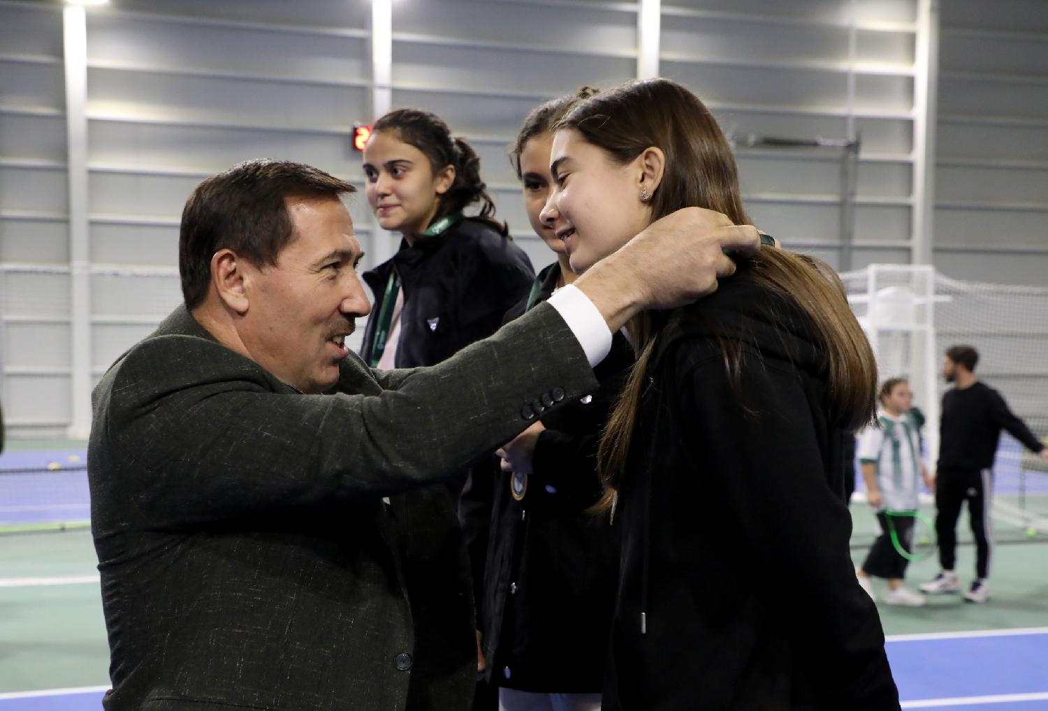 Karatay Belediyesi’nin tenis sporunun sevdirilmesi ve yaygınlaştırılması amacıyla gerçekleştirdiği turnuva, hem deneyimli oyuncuları hem söz konusu spora yeni başlayan tenisçiler hem de sporcuların ailelerinin katılımlarıyla oldukça renklendi. Yarı final ve final maçlarının ardından düzenlenen ödül törenine Karatay Belediye Başkanı Hasan Kılca, Karatay Belediye Başkan Yardımcısı Osman Ciğer, sporcular ve aileleri katıldı.