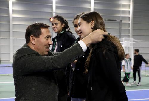 Karatay Belediyesi 2024 Ödüllü Tenis Turnuvası’nda dereceye giren sporculara ödüllerini veren Karatay Belediye Başkanı Hasan Kılca; “Ödül alan çocuklarımız var ama bizim için turnuvaya katılan çocuklarımızın hepsi başarılı ve şampiyondur. Spor herkes için değerlidir. Dolayısıyla bizler de çocuklarımızın ve gençlerimizin daha fazla, daha modern ile çeşitli branşlarda spor yapabilmeleri için çalışıyoruz. Bilindiği gibi Temmuz ayında Karatay Belediyesi olarak şehrimize Konya’nın en büyük Karatay Kapalı Tenis Kortu’nu kazandırmıştık. Tesisimize ve tenise olan ilgi her geçen gün artıyor. Bu tesisimizde artık bu şekilde turnuvalar da yapıyoruz ve buradanyeni, yetenekli sporcularımız yetişiyor Bu turnuvayla da güzel bir başlangıç yapmış olduk. Bu vesileyle ben bütün çocuklarımızı tebrik ediyorum, ailelerimizi tebrik ediyorum, hocalarımızı tebrik ediyorum. Karatay Belediyesi olarak spora her zaman en yüksek değeri vermeye devam edeceğiz. Organizasyonda emeği geçen herkese ayrı ayrı teşekkür ediyorum” ifadelerini kullandı.
