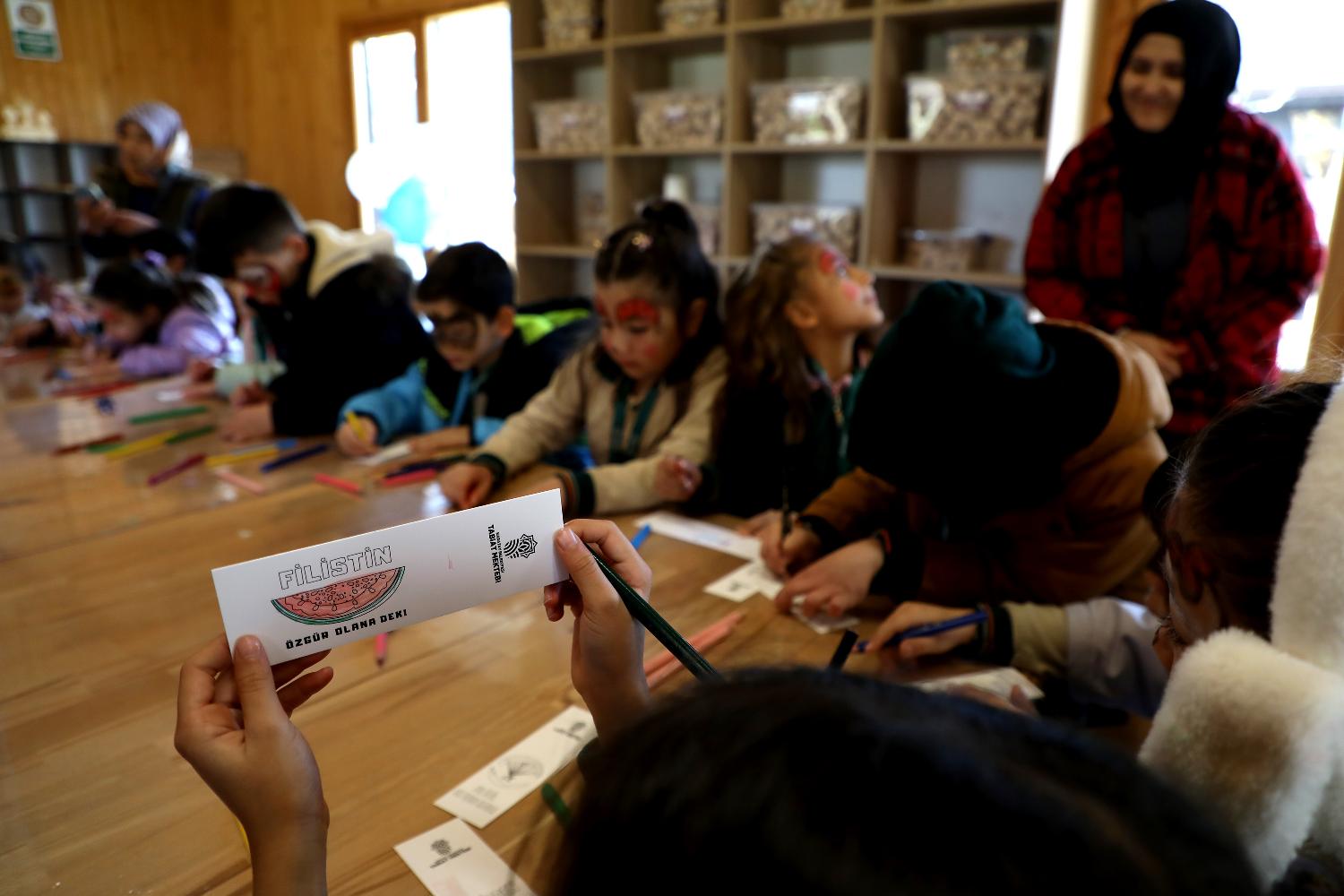 20 Kasım Dünya Çocuk Hakları Günü için düzenlenen etkinlikte, bir yılı aşkın bir süredir İsrail saldırılarında ölen, yaralanan, şiddet gören ve zulüm altında yaşamak zorunda kalan Gazzeliler başta olmak üzere dünya çocukları da unutulmadı. Etkinlikte bu konuda bir resim sergisi de açılırken; etkinliğe katılan çocuklar da; Filistin bayrağı, karpuz dilimi ve Hanzala adlı karikatürü ile daha birçok konudaki kitap ayraçlarını boyayarak, Filistin başta olmak üzere dünyanın dört bir yanındaki çocukların dramına dikkat çekmek ve bu konuda farkındalık oluşturmak istediler.