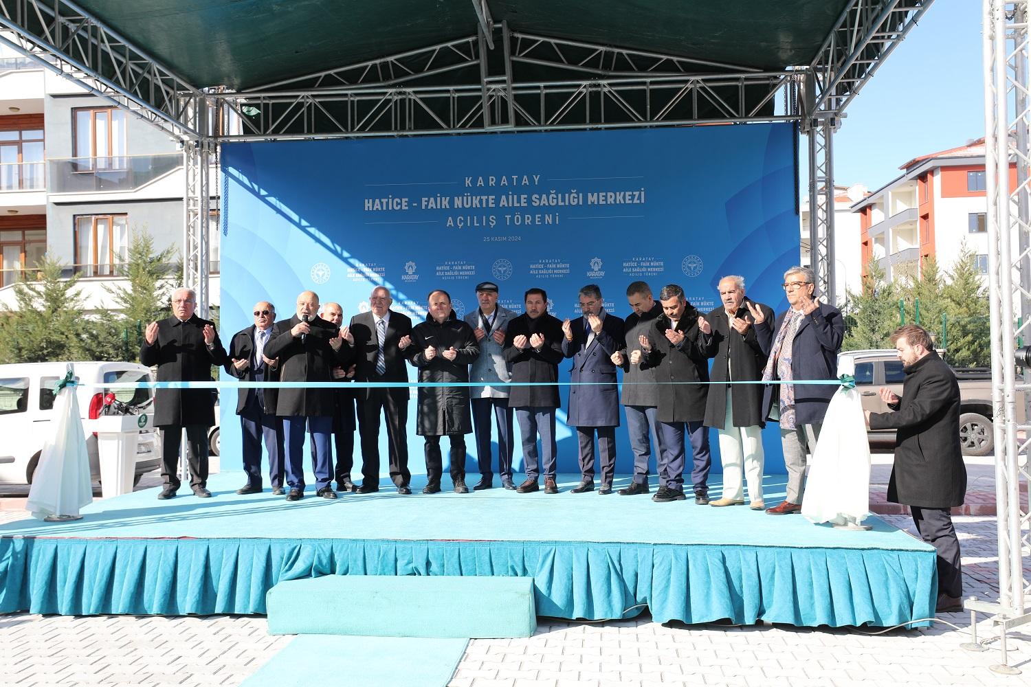 Protokol konuşmalarının ardından Karatay Belediyesi ve hayırsever İsmail Nükte’nin katkılarıyla yapımı tamamlanan Hatice-Faik Nükte Aile Sağlığı Merkezi’nin resmi açılışı, edilen duanın ardından gerçekleştirildi. Resmi açılışın ardından protokol üyeleri, aile sağlığı merkezini inceleyerek tesis hakkında bilgi aldılar.