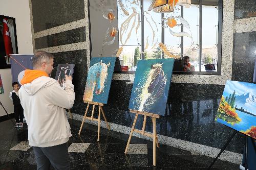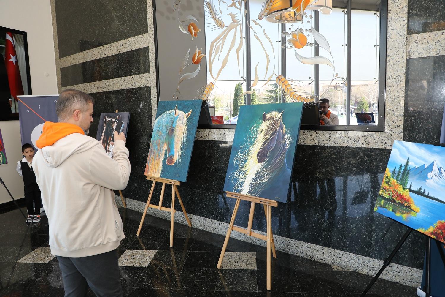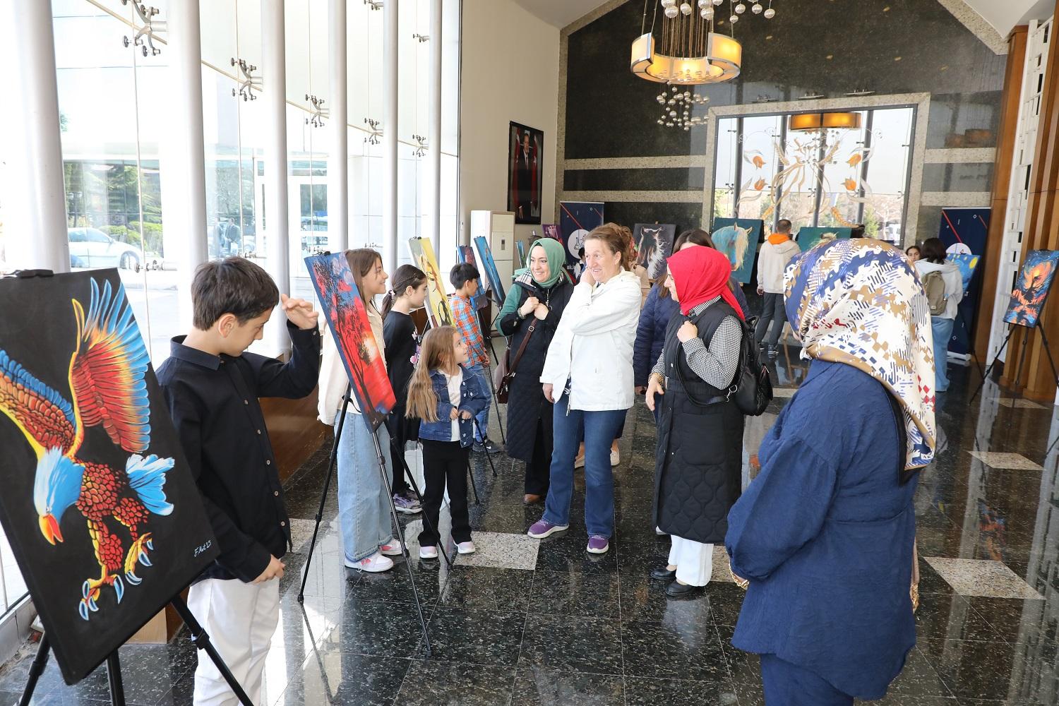 Karatay Belediyesi Hizmet Binası girişinde açılan sergide, Görsel Sanatlar Bölümü’nde eğitim gören 24 öğrencinin özenle hazırladığı 35 eser, sanatseverlerin beğenisine sunuldu.