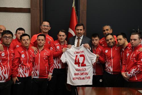 HASAN KILCA, DOWN SENDROMLU FUTSAL MİLLİ TaKIMI’NI AĞIRLADI