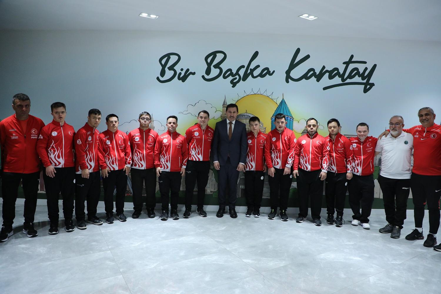 Türkiye Down Sendromlu Futsal Milli Takımı, Karatay Belediye Başkanı Hasan Kılca’yı makamında ziyaret etti. Samimi bir ortamda gerçekleşen buluşmada özel sporcular hem başarılarını paylaştı hem de Başkan Kılca’ya spora verdiği desteklerden dolayı teşekkür etti. Ziyaretin ardından ise millitakım oyuncuları, Karatay Belediyesi Futsal Takımı ile dostluk maçı gerçekleştirdi.