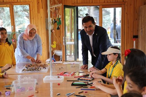 Başkan Hasan Kılca, Tabiat Mektebi’nin kapanış programında da öğrencilerle bir araya geldi. Öğrencilerin derslerine katılarak onları atölye çalışmalarında izleyen Başkan Kılca, çocuklarla sohbet etti, etkinliklerine eşlik etti. Kil şekillendiren, fide diken ve hayvanlarla ilgilenen miniklerin heyecanına ortak olan Başkan Kılca, yaptığı konuşmada çocukların doğayla temas kurmasının ve çevre bilinci kazanmasının önemine dikkat çekti. Kılca, bu tür projelerin artarak devam edeceğini belirtti.
