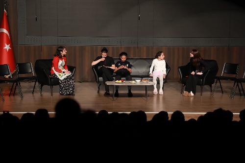 Tiyatro Kulübü’nden bir öğrenci, şair Nurullah Genç’in “Babama” adlı şiirini seslendirdi. Hemen ardından aynı kulüp tarafından sahnelenen “Z Kuşağı” adlı tiyatro oyunu izleyicilerden tam not aldı.