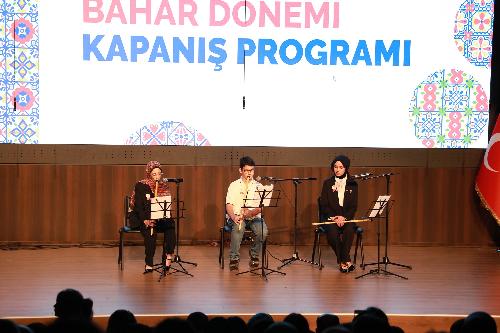 Bahar dönemi kapanış etkinliklerinde; ahşap, çini-seramik ve resim atölyelerinde öğrencilerin yıl boyunca hazırladığı eserler sergilendi. Çocukların hayal gücü ve el becerilerini yansıtan çalışmalar, ziyaretçilerden büyük beğeni topladı. Program, İstiklal Marşı’nın okunmasıyla başlayıp protokol konuşmalarıyla sürdü; ardından sahneye öğrenciler çıktı.