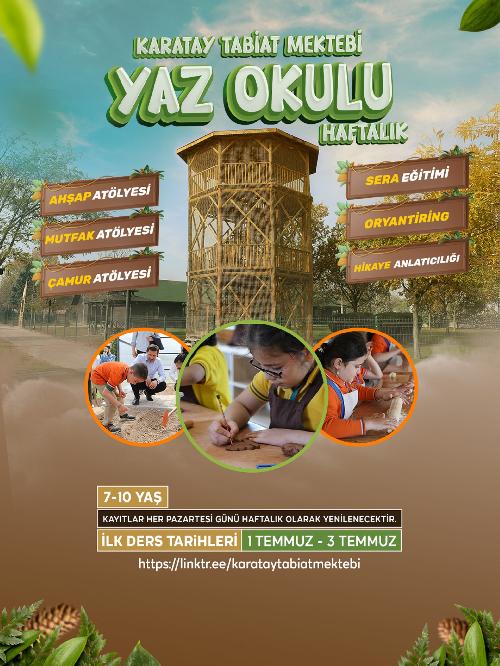 Karatay Belediyesi, çocukların okul dışı öğrenme sürecine katkıda bulunmak ve doğa sevgisini pekiştirmek amacıyla bu yıl Karatay Tabiat Mektebi’nde de Yaz Okulu düzenliyor. 7-10 yaş arası çocuklara yönelik planlanan program için kayıtlar, haftalık olarak her pazartesi günü yenilenecek. İlk dersler ise 1-3 Temmuz tarihleri arasında başlayacak. Programa katılmak isteyenler detaylı bilgilere https://linktr.ee/karataytabiatmektebi adresinden ulaşabilecek.
