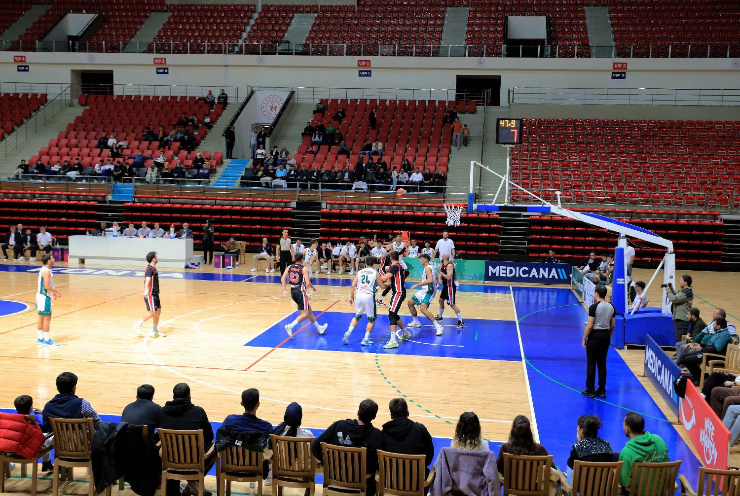 Türkiye Basketbol 2. Ligi’nde (TB2L) mücadele eden Karatay Belediyespor Kulübü Basketbol A Takımı, normal sezonun bitimine 2 hafta kala Play-Off biletini garantiledi. TBL’ye yükselme yolunda önemli bir mesafe kaydeden yeşil-siyahlılar, kalan maçlarını da kazanarak Play-Off’lara en iyi şekilde başlamayı hedefliyor.