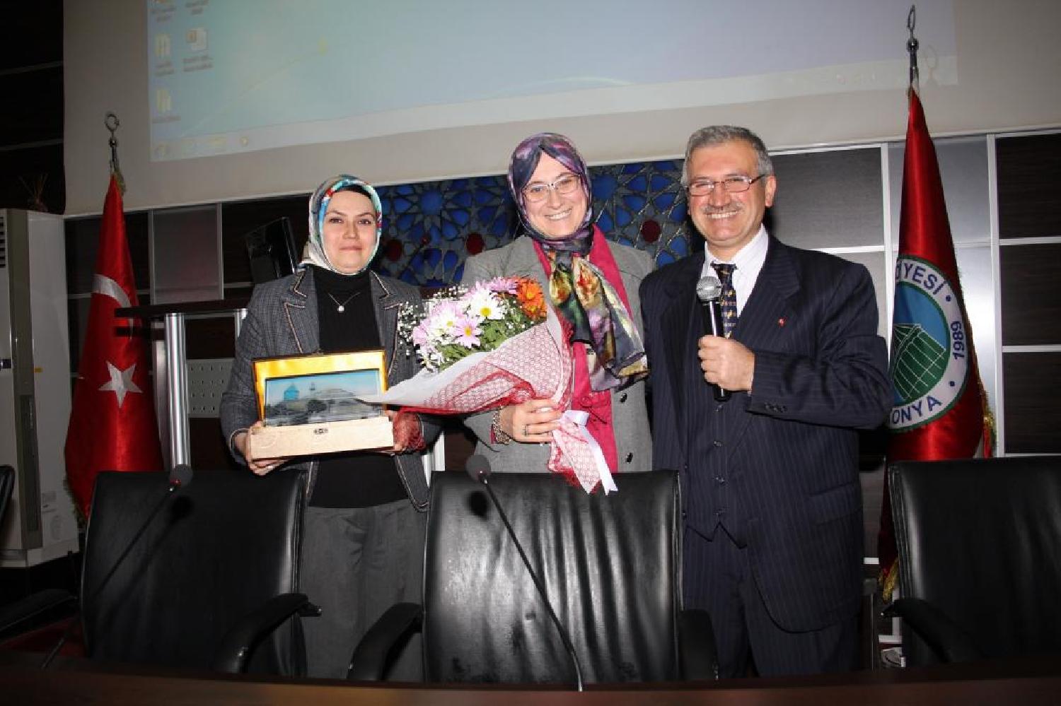 Konferansın sonunda konuşmacı Dr. Hüseyin Çeliker'e, Karatay Belediyesi Kültür ve Sosyal İşler Müdürü Ayşe Gündoğar Şenyiğit tarafından çiçek ve hediye takdim edildi.