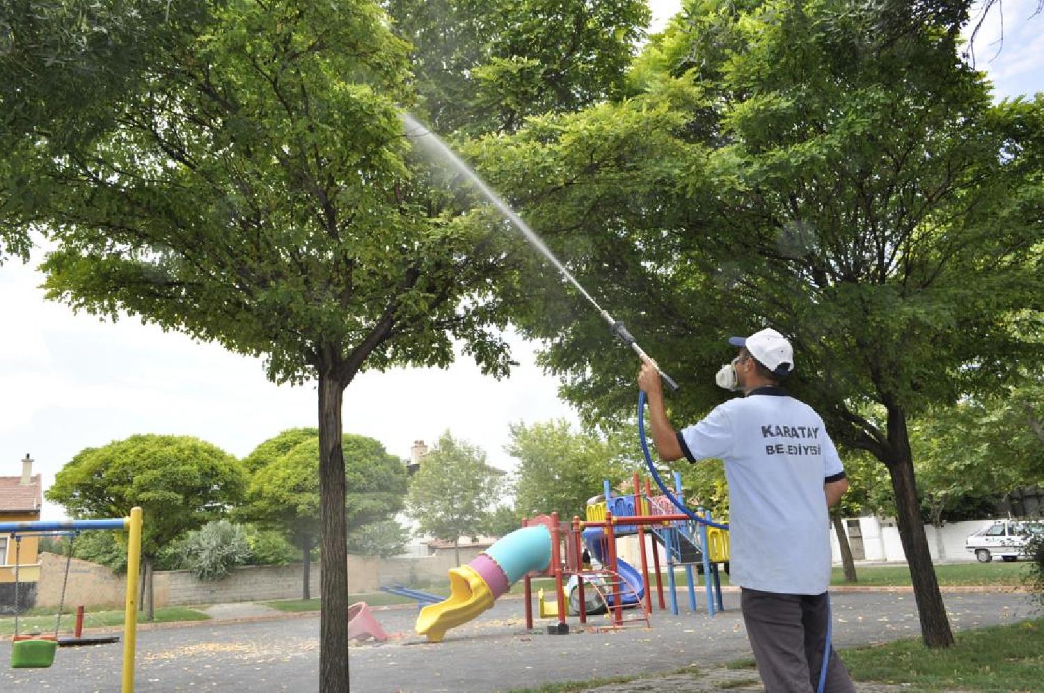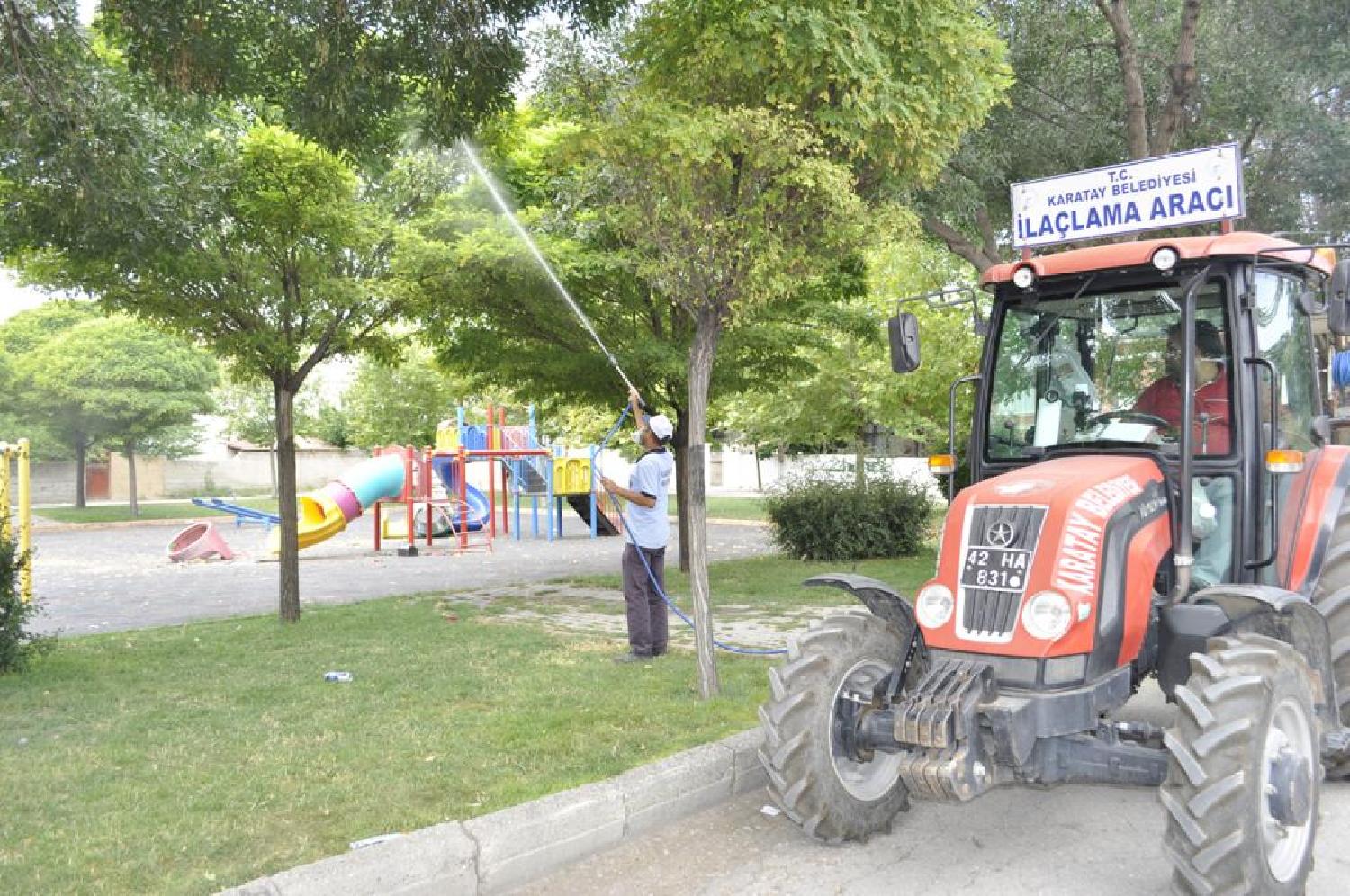 Son günlerde şehir genelinde yaygın olarak görülen zararlı haşerelere karşın Karatay Belediyesi Veteriner İşleri Müdürlüğü ile Park ve Bahçeler Müdürlüğü titizlikle ilaçlama çalışmalarını sürdürüyor.