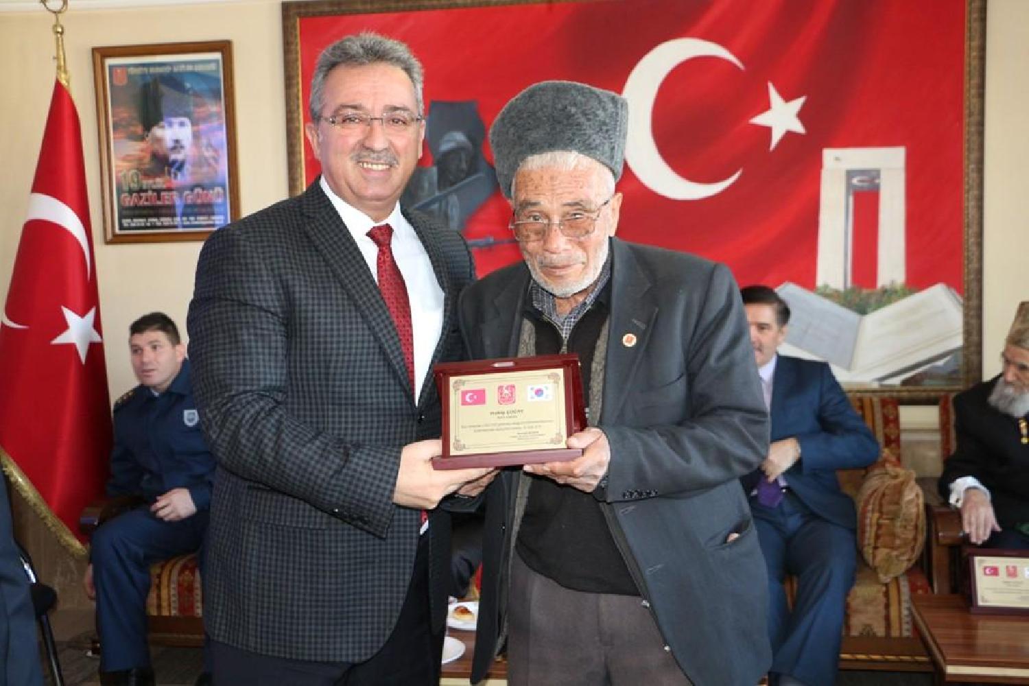 Kore Savaşı Kumyangjiangni muharebelerinde alınan başarının yıldönümü dolayısıyla Türkiye Muharip Gaziler Derneği Konya Şubesi’nde gerçekleştirilen plaket töreninde Karatay Belediye Başkanı Mehmet Hançerli Kore Gazileri ile bir araya geldi.