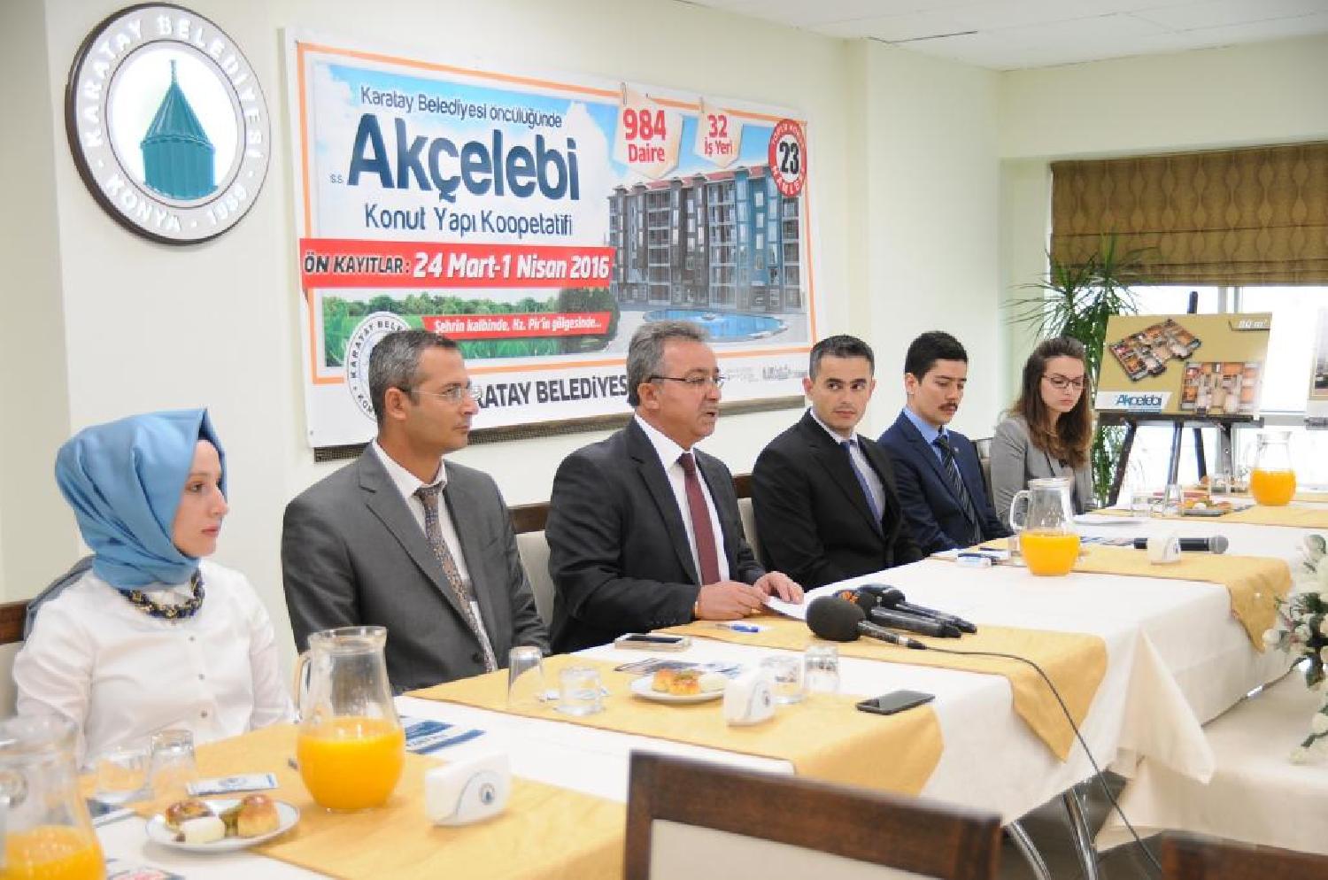 Karatay Belediyesi, 23 üncü toplu Konut hamlesi olan 984 dairelik Akçelebi Konutlarının ön kayıtlarını almaya başladı. Konuyla ilgili belediye hizmet binasında basın toplantısı düzenleyen Karatay Belediye Başkanı Mehmet Hançerli, Mevlana Müzesine yakın bir bölgede kurulacak yeni kooperatifin 230 Bin m² lik bir alanı kapsadığını ve bu alanda uzun bir zaman hazırlık çalışmalarının sürdüğünü söyledi. Büyükşehir Belediyesi ve Karatay Belediyesi olarak yüzlerce hemşehrimizle yapılan istişareler neticesinde anlaşmaya varıldığını dile getiren Hançerli, Mevlana Kültür Merkezi karşısında yeni bir kentsel dönüşüm çalışması başlattıklarını belirtti. 984 daire ve 32 adet iş yerinden oluşan Akçelebi konutlarına hızlı bir şekilde başlanacağını kaydeden Başkan Hançerli, Aslanlı Kışla Caddesi, Ali Ulvi Kurucu, Sarı Hasan ve Şeyhulema Recepağa caddelerinin çevrelediği alan içinde kalan bölgede hayata geçecek proje kapsamında ticari alanlar, otel yerleri, rekreasyon alanları ve daireler olduğunu ifade etti. 80 m², 100 m², 130 m², 167 m², ve 185 m² lik dairelerden oluşan Akçelebi konutlarında 80 m² lik daireler için önkayıt ücreti 200 TL, peşinat 17.000 TL ve aylık aidatının ise 1.700 TL olacağını söyleyen Başkan Mehmet Hançerli, 100 m² lik daireler için 250 TL ön kayıt ücreti, peşinat 21.000 TL aylık aidat ise 2.100 TL, 130 m² lik daireler için 300 TL ön kayıt ücreti, peşinat 27.500 TL aylık aidat ise 2.750 TL, 167 m² lik daireler için 350 TL ön kayıt ücreti, peşinat 35.000 TL aylık aidat ise 3.500 TL, 185 m² lik daireler için 400 TL ön kayıt ücreti, peşinat 39.000 TL aylık aidat ise 3.900 TL olarak belirlendiğini dile getirdi. Karatay Belediye Başkanı Mehmet Hançerli, 984 daireden 614 dairenin arsa sahiplerine kalan 365 dairenin ise üye kaydının alınacağını belirterek 24 Mart - 1 Nisan tarihleri arasında üye kayıtlarının başlayacağını ifade etti. Başkan Hançerli ayrıca kayıtların tamamlanmasıyla birlikte noter huzurunda çekilecek kurayla asil üyelerin belirleneceğini sözlerine ekledi.