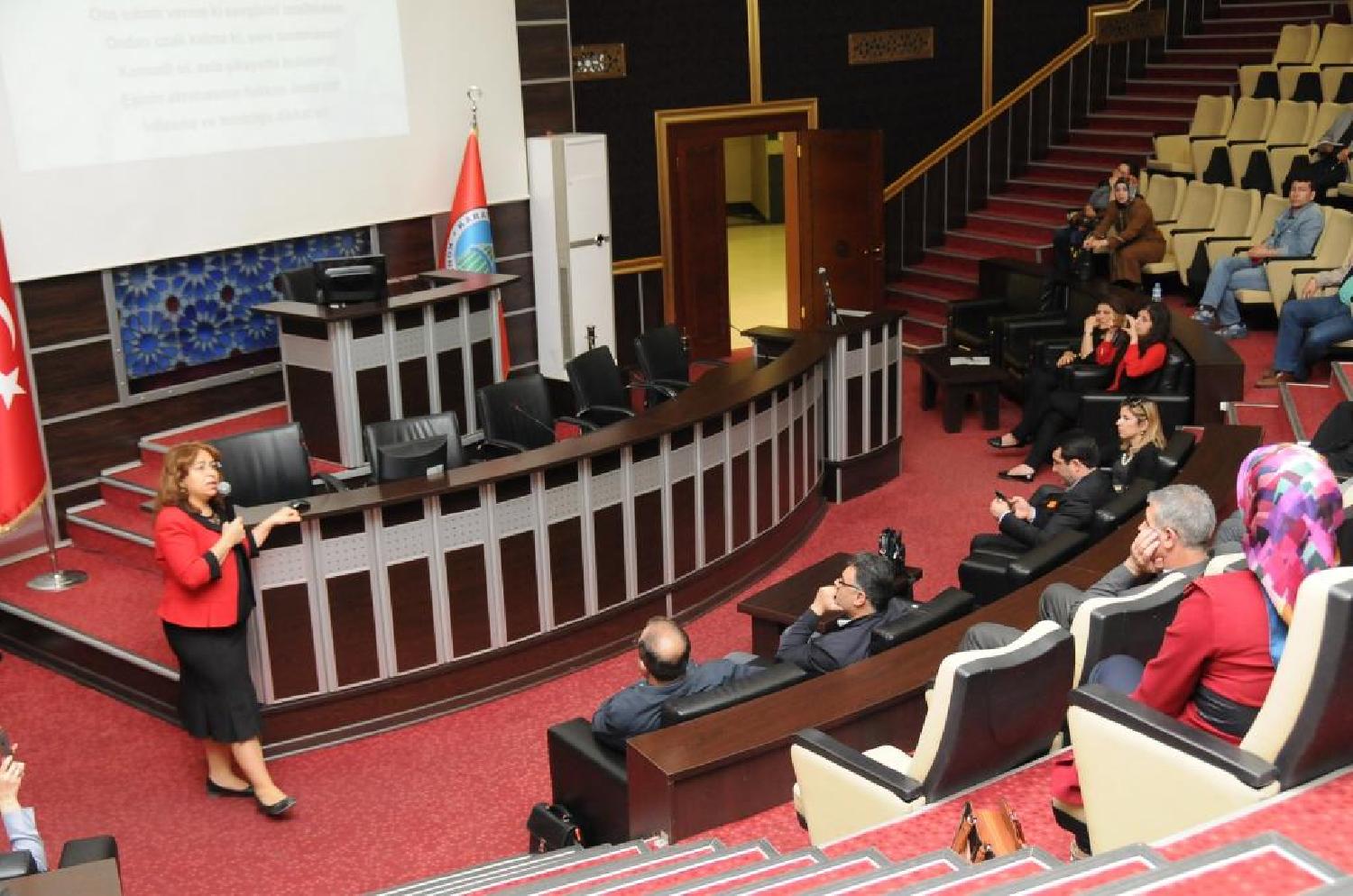 Düzenlenen konferansa KTO Karatay Üniversitesi Öğretim Üyeleri, Belediye Meclis üyeleri ve çok sayıda davetli katıldı. Yrd. Doç. Dr. Hatice Yalçın tarafından sunum eşliğinde "Çocuklarımıza Neyi Nasıl Öğretelim - Çocuklarda Davranış Bozuklukları" konulu seminer verildi. Seminerde Allah'ın kadın ve erkeğe özel yetenekler verdiğini ifade eden Hatice Yalçın, kadınların fıtratında ayrıntılara çok dikkat eden bir yapıya sahip olduğunu belirtti. Özellikle küçük yaştaki çocukların kafalarının boş olduğunu, yaşadığı bir olayı yada gördüklerini yıllar sonra hatırlayabildiğini dile getiren Hatice Yalçın, "Büyükler olarak çocukların masum dünyasına girip onları şekillendirmeliyiz" dedi. Mutsuz bir kadının mutlu bir çocuk yetiştiremeyeciğini vurgulayan Yalçın, çocuğunun iyi yetişmesini isteyen bir erkeğin önce eşini mutlu etmesi gerektiğini belirterek anne mutlu olursa çocuğunda mutlu olacağını kaydetti. Sevgi gören çocukların daha az stres hormonu salgıladığını ifade eden Yrd. Doç. Dr. Hatice Yalçın, çocuklarla kaliteli zaman geçirilmesinin onları yakından tanınmasına vesile olacağını sözlerine ekledi.