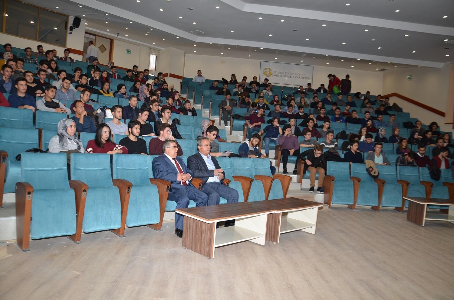 Selçuk Üniversitesi Halil Cin Konferans Salonunda gerçekleşen seminerde Doç.Dr. Mehmet Kamanlı ve İnşaat Mühendisliği Bölümü öğrencileri hazır bulundu. Doç.Dr. Mehmet Kamanlı’nın teşekkür konuşmasının ardından Karatay Belediye Başkanı Mehmet Hançerli söz aldı. Başkan Hançerli kendisinin de Selçuk Üniversitesi İnşaat Mühendisliği Bölümü mezunu olduğunu ifade etti. “Mühendis gözü” kavramına değinen Başkan Hançerli, mühendis bakış açısının yıllar içerisinde tecrübe ile kazanılacağını ve bir mühendis için büyük önem taşıdığını dile getirdi. Gençlere, öğrencilik yıllarından bu yana edindiği tecrübelerle ilgili anekdotlar aktaran Başkan Hançerli, öğrencilere okul sürecinde, mezun olduktan sonra ne yapmak istediklerinin kararını vermelerinin ve ona göre planlamalar yapmalarının ileride büyük fayda sağlayacağını belirtti. Başkan Hançerli, yapılan işin gözle görülür sonuçları olmasının inşaat mühendisliğinin en güzel yanı olduğunu dile getirdi. Belediyelerin özellikle fiziki çalışmalarla ön plana çıkan yerler olduğunu ifade eden Başkan Mehmet Hançerli, inşaat mühendisliği mesleğinin avantajını belediye çalışmaları süresince yaşadığını sözlerine ekledi.
