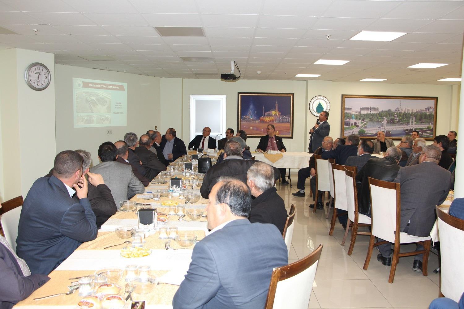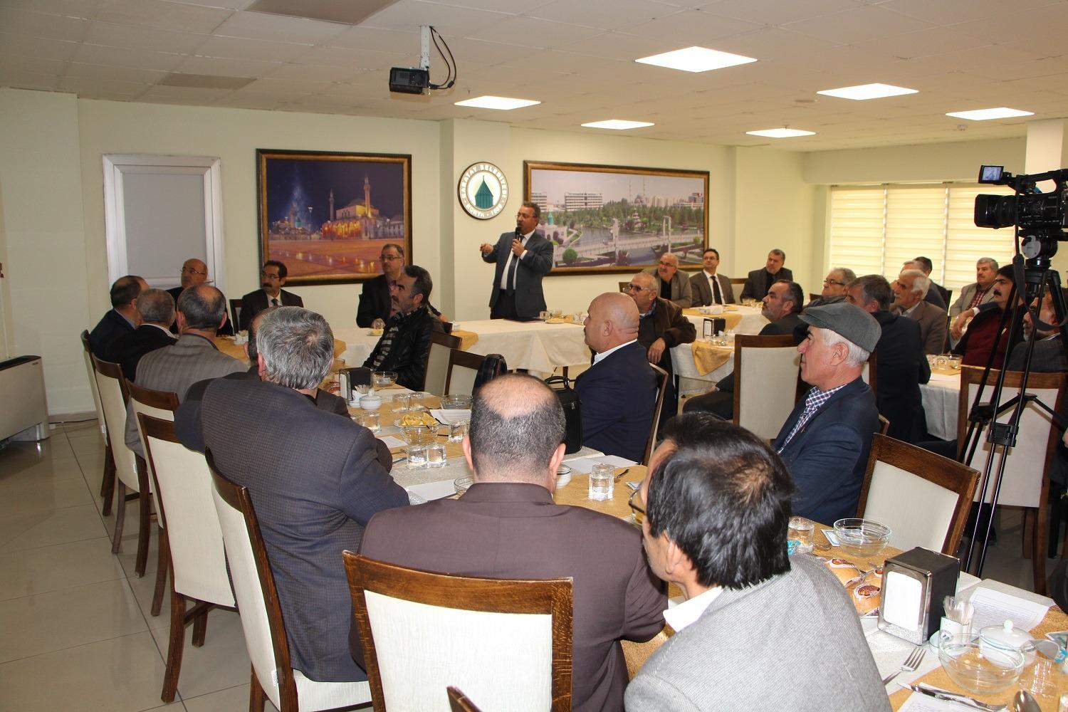 Karatay Belediyesi tarafından düzenlenen Muhtarlar ile istişare toplantısı yoğun katılımla gerçekleşti. Toplantıya Konya Karatay ve Tüm İlçeleri Muhtarlar Derneği Başkanı Ahmet Küçük ve Dernek Üyesi Muhtarlar, Konya Muhtarlar Birliği Derneği Başkanı Suat Uzun ve Dernek Üyesi muhtarlar katıldı