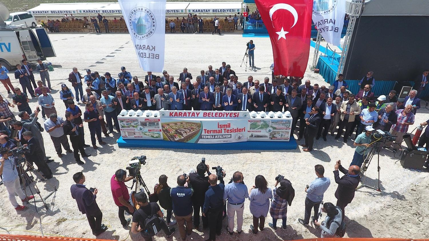 Protokol konuşmalarının ardından okunan dualar eşliğinde Karatay Belediyesi İsmil Termal Tesisleri temel atma töreni gerçekleştirildi.