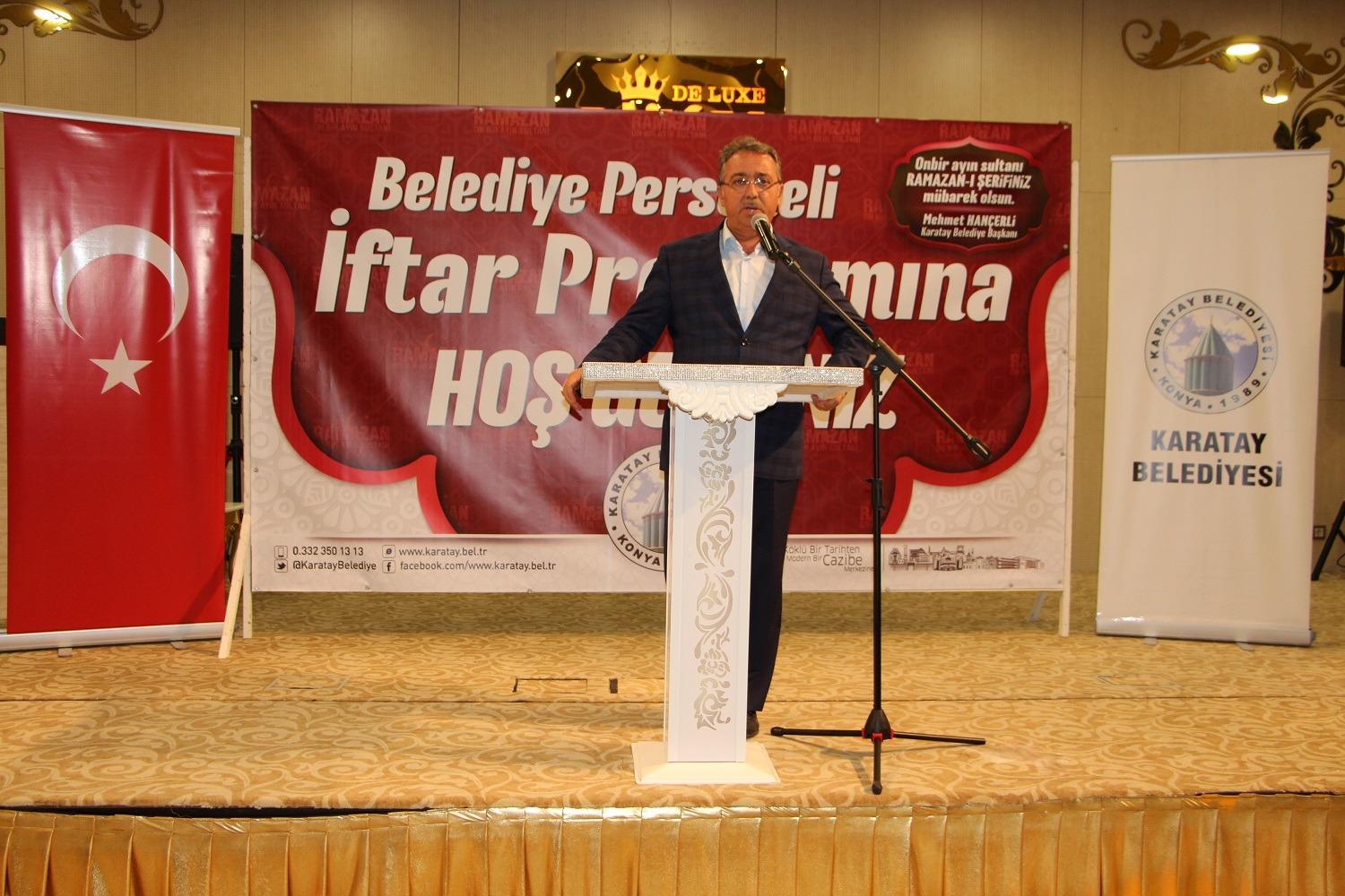 Karatay Belediyesi tarafından geleneksel olarak düzenlenen personel iftar programına; Karatay Belediye Başkanı Mehmet Hançerli, Bem-Bir-Sen (Belediye ve Özel İdare Çalışanları İşbirliği Sendikası) Konya Şube Başkanı Sait Kozoğlu, Hizmet-İş Sendikası (Tüm Belediye ve Genel Hizmet İşçileri Sendikası) Konya Şube Başkanı Vacit Sır, Meclis Üyeleri, Belediye Başkan Yardımcıları, Daire Müdürleri ve Belediye Personelleri katıldı.