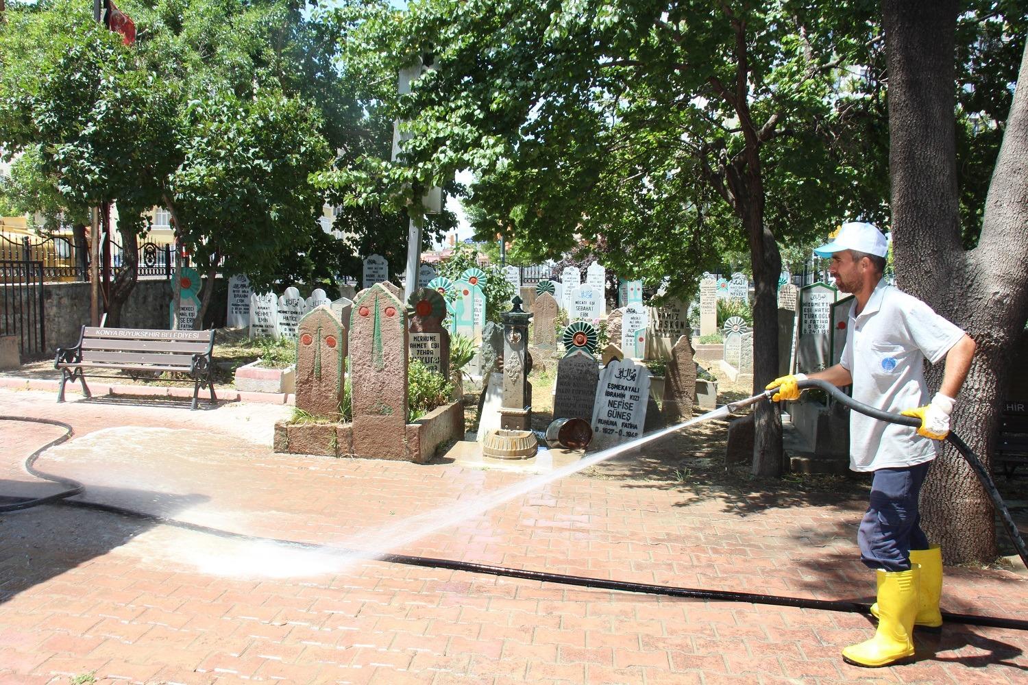 Karatay Belediyesi yaklaşan Ramazan Bayramı münasebetiyle ilçe genelinde camii ve mezarlıklarda temizlik çalışması yürütüyor.
