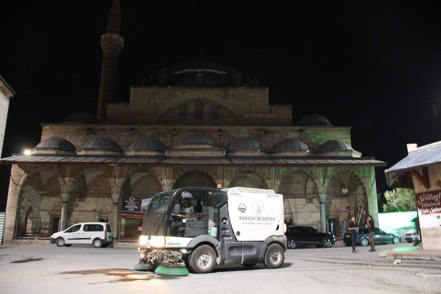 KARATAY TEMİZLİK ÇALIŞMALARI İLE ARiFE GECESİNDEN BAYRAM SABAHINA HAZIRLANDI