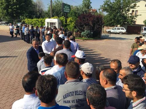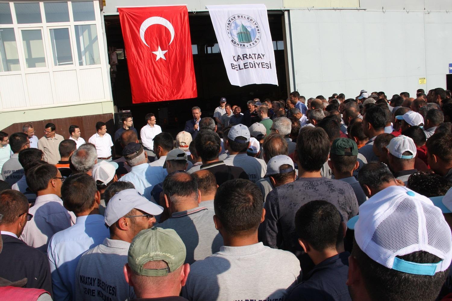 Başkan Hançerli, Tatlıcak Tesislerindeki bayramlaşmanın ardından Park ve Bahçeler Müdürlüğü personelleri ile bayramlaşmak üzere Karatay Belediyesi İsmail Karakuş Fidanlığına geçti. Başkan Hançerli, konuşmasında Karatay Belediyesi olarak her zaman personellerin özlük haklarının en iyi seviyede olması ve haklarını eksiksiz olarak almaları için hareket ettiklerini belirtti.
