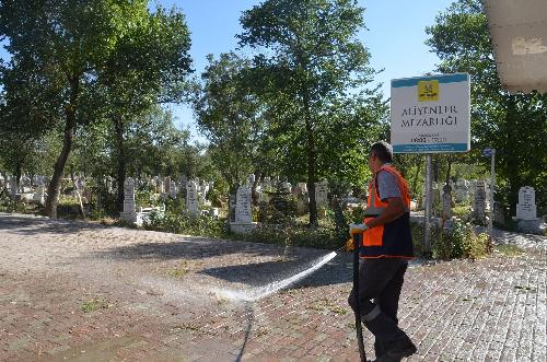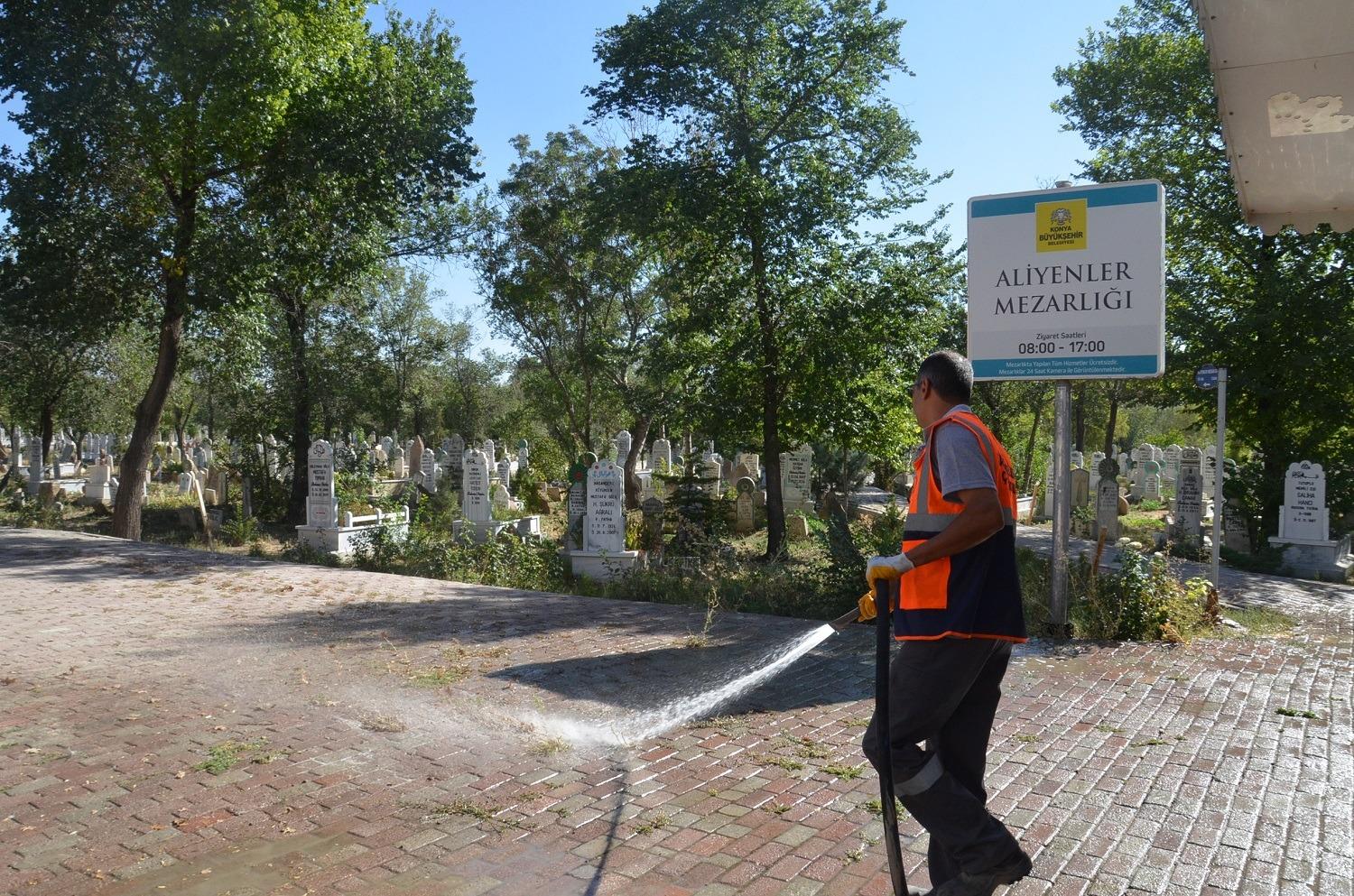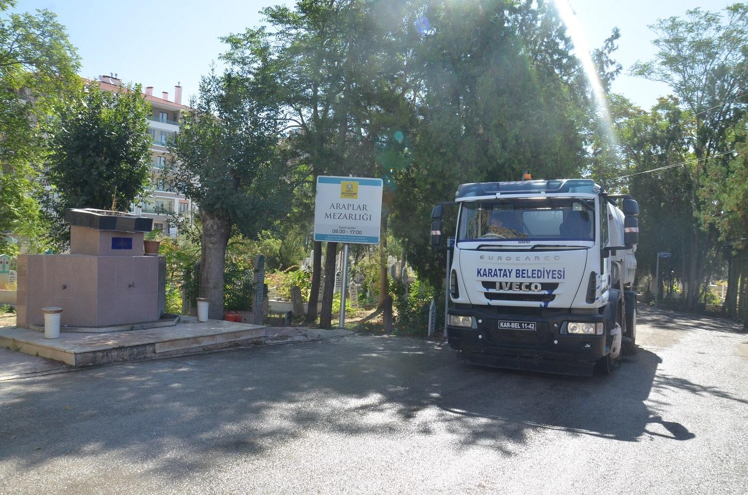 Karatay Belediyesi Çevre Koruma ve Kontrol Müdürlüğü ekipleri yaklaşan Kurban Bayramı öncesinde ilçe genelinde camii ve mezarlıklarda temizlik çalışması yürütüyor.
