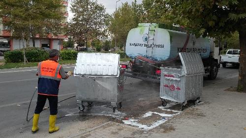 Karatay’da Çöp Konteynerleri Dezenfekte Ediliyor