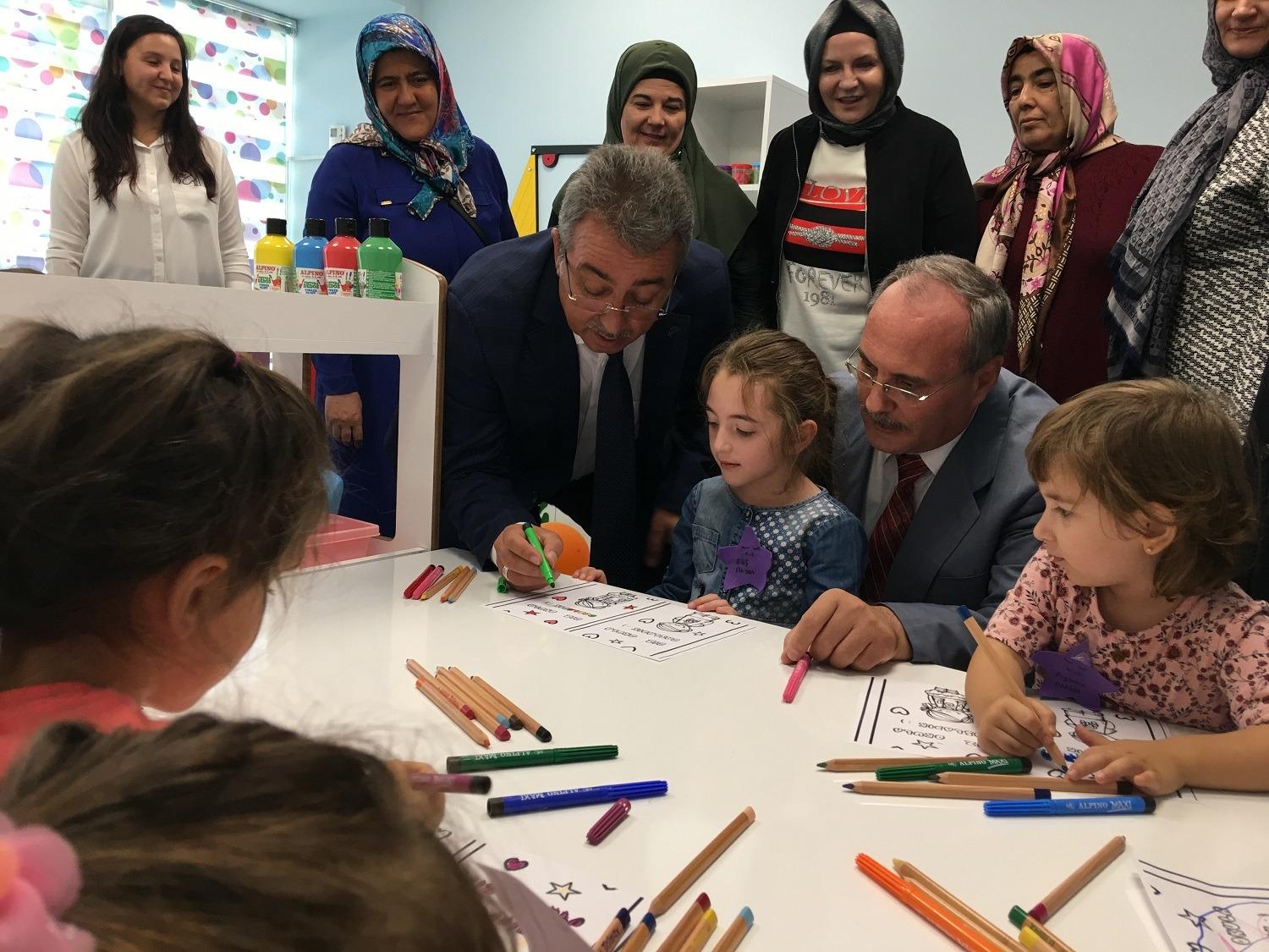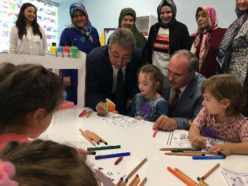 Protokol, konuşmaların ardından kreşin açılışını gerçekleştirerek; minik öğrencilerle bir süre sohbet etti.