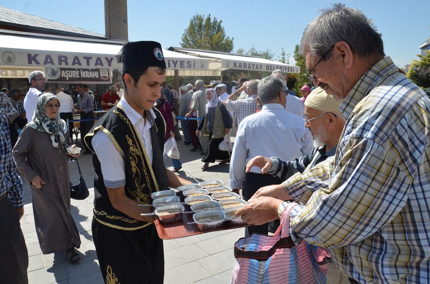 Karatay Belediyesi tarafından birlik, beraberlik, bereket ve paylaşmanın sembolü, Muharrem Ayı'nın 10. günü olan Aşure Gününde ilçedeki çeşitli camilerde aşure ikramı gerçekleştirildi.