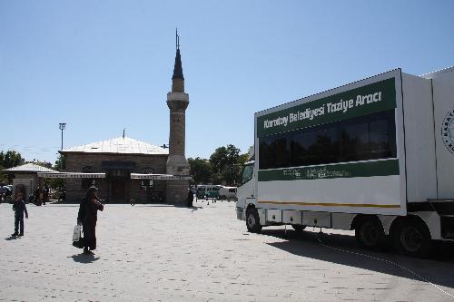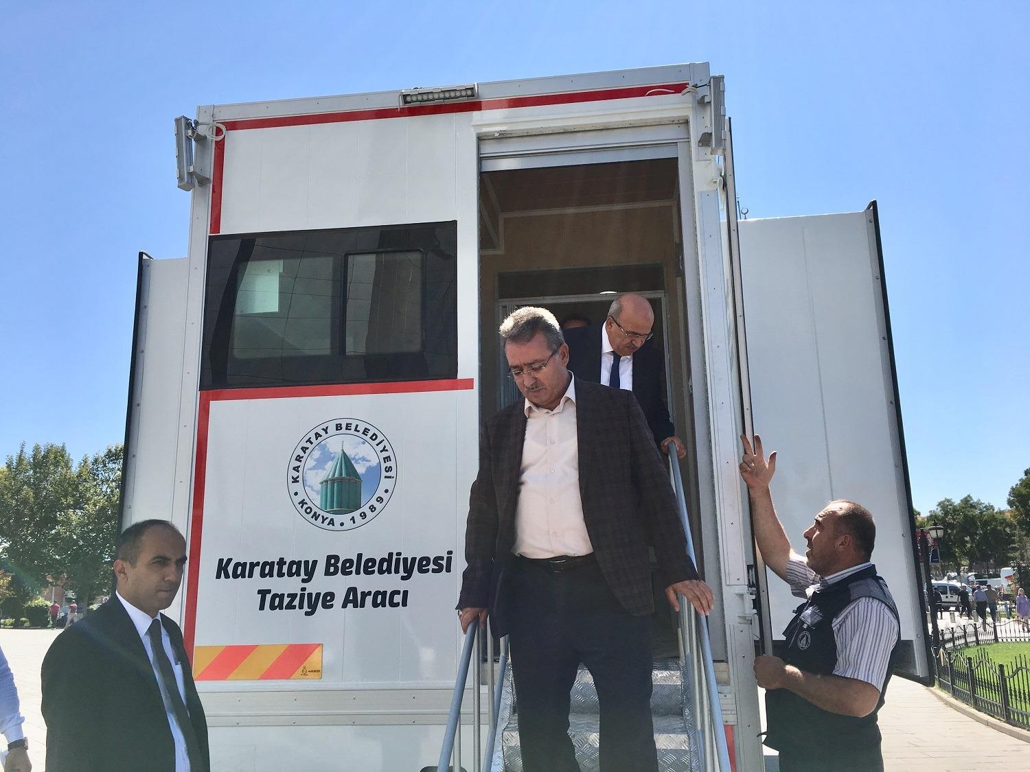 Karatay Belediyesi vatandaşların acılı günlerinde taziye kabulünde kullanılmak mobil taziye aracını hizmete sundu