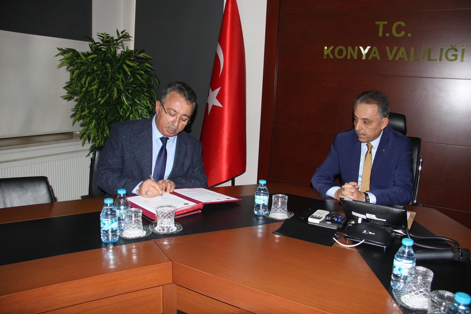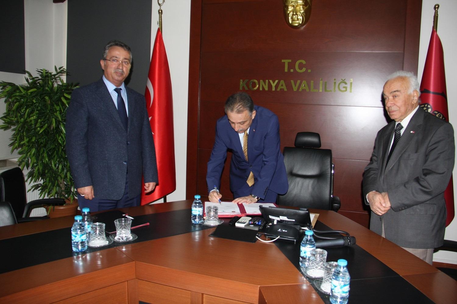 Konya Valiliğinde gerçekleşen protokole Konya Valisi Cüneyit Orhan Toprak, Karatay Belediye Başkanı Mehmet Hançerli, Kızılay Derneği Konya Şube Başkanı Kemal Gödeneli katıldı.