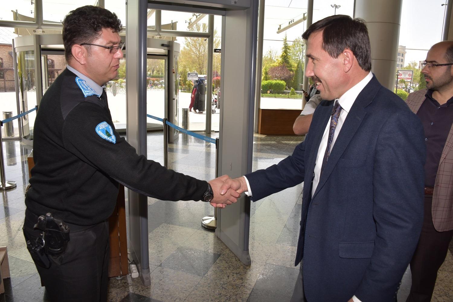 Karatay Belediye Başkanı Hasan Kılca 1 Mayıs Emek ve Dayanışma Günü dolayısıyla belediye personelini ziyaret etti.
