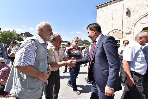 Muharrem Ayı olması dolayısıyla Cuma Namazlarını Şerafettin Camii cemaatinin yanı sıra vatandaşlara aşure ikramında da bulunan Karatay Belediye Başkanı Hasan Kılca, bölge esnaflarının ve vatandaşların taleplerini dinleyerek mahallenin ihtiyaçları için istişareler yaptı.