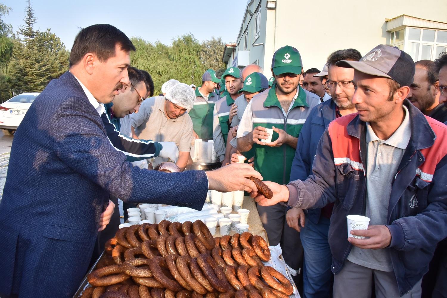 Karatay Belediye Başkanı Hasan Kılca, Tatlıcak Tesisleri’nde personelle simit ve süt eşliğinde kahvaltıda bir araya geldi. Karataylıların mutluluğu ve rahatı için gayret gösteren tüm personele teşekkür eden Başkan Hasan Kılca, “Belediye personelimizin gayretli çalışmaları dolayısıyla belediye personelimizle gurur duyuyoruz. Bizler kocaman Karatay Belediyesi Ailesi olarak şehrimizi de işimizi de çok seviyoruz. Böyle çalışınca da başarının gelmesi doğaldır” dedi.
