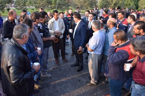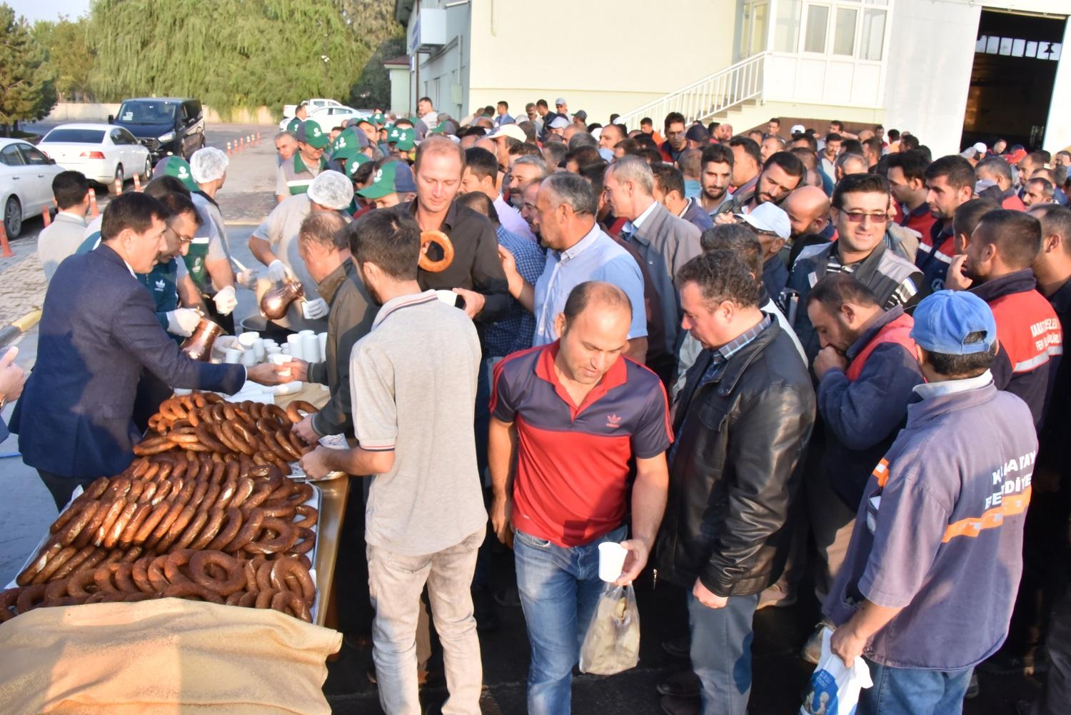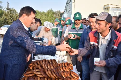 İşçilerin mesaisi öncesinde simit ve süt eşliğindeki kahvaltıda personeliyle bir araya gelen Başkan Hasan Kılca, personelin istek, talep ve önerilerini de dinledi, işçilerle bir süre sohbet etti.