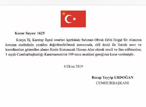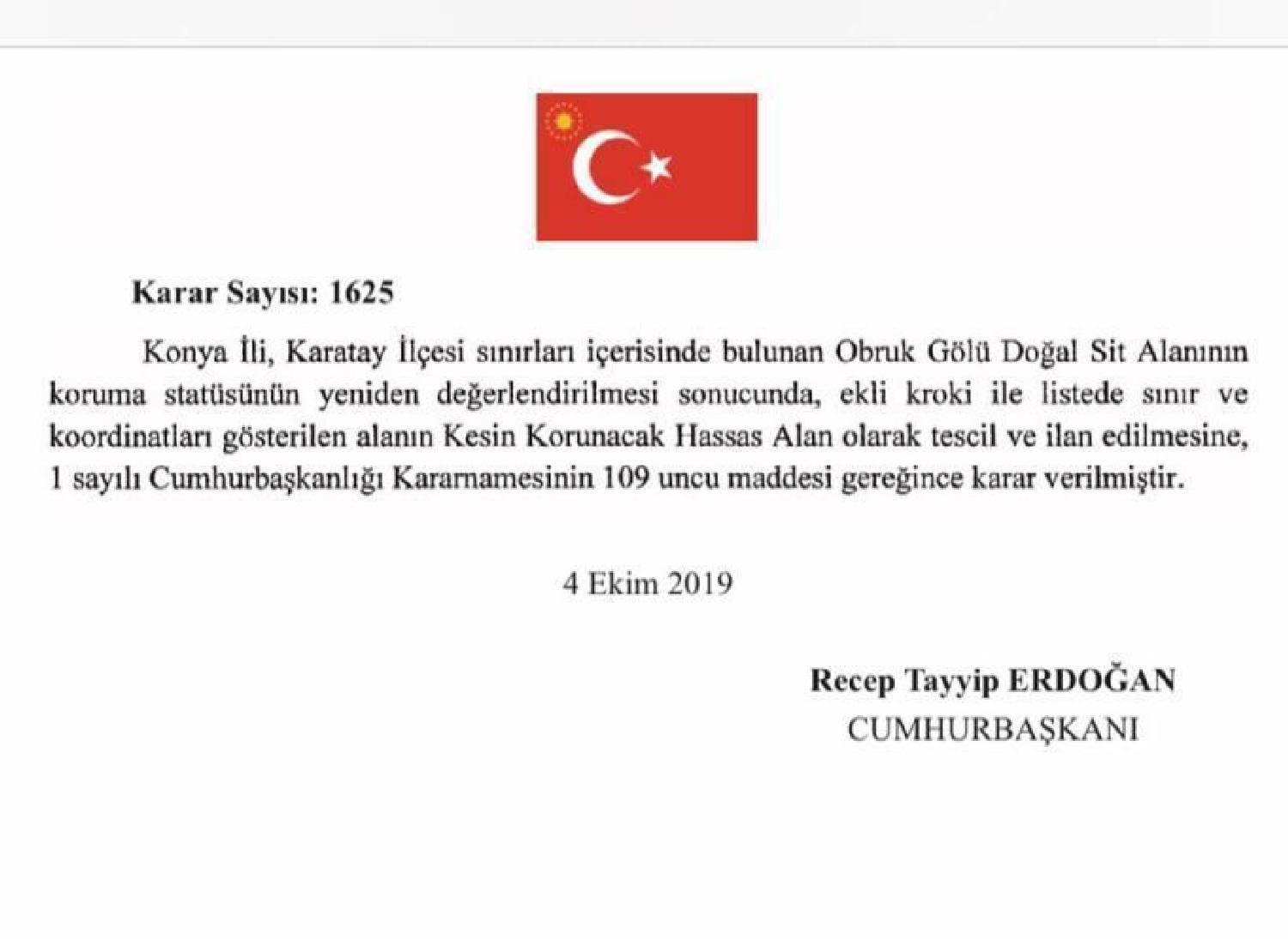OBRUK GÖLÜ, CUMHURBAŞKANI ERDOĞAN İMZASI İLE KESİN KORUMA ALTINDA