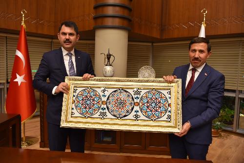 Bir dizi program için Konya’da bulunan Çevre ve Şehircilik Bakanı Murat Kurum, Karatay Belediye Başkanı Hasan Kılca’yı makamında ziyaret etti.