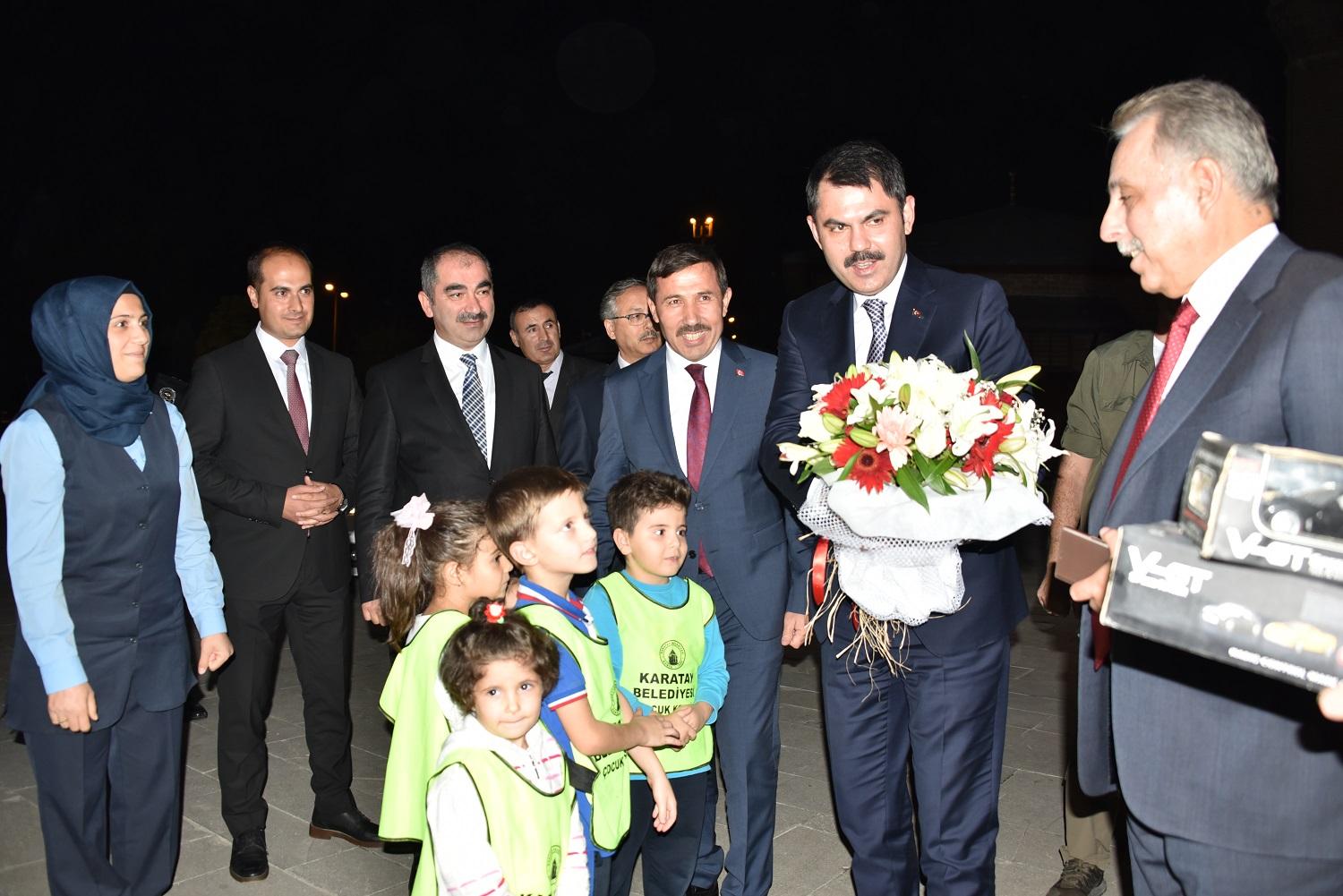Bakan Kurum, “Karatay ilçemiz, Konya’nın en eski yerleşim merkezlerinden biri. Yüzlerce yıllık geçmişiyle birçok medeniyete ev sahipliği yapan Karatay, Hz. Mevlana’nın kabrinin bulunduğu yer olması bakımından da ayrıca önemli. Bizler de hem hükümet hem de bakanlık olarak buranın tarihi ve doğal güzelliklerini koruyarak ihya etmeyi boynumuzun borcu olarak görüyoruz. Hep birlikte Karatayımızı inşa ve ihya edilmiş olarak gelecek nesillere bırakmamız gerekiyor. Tabi bu kapsamda Karatay Belediye Başkanımız Hasan Kılca Başkanımızın da çok güzel projeleri var. Çevre ve Şehircilik Bakanlığı olarak belediyemizin tüm projelerine destek vereceğiz, tüm çalışmalarınızı ilgiyle takip ediyoruz ve yanınızdayız. Yapmamız gereken, Konya’mızdaki, Karatay’ımızdaki birlik ve beraberliği en üst seviyeye çıkarmaktır. Bu noktada her türlü çabayı göstereceğimizi belirtiyor ve Hasan Kılca Başkanımız başta olmak üzere tüm ekibini tebrik ediyorum, başarılarının devamını diliyorum” diye konuştu.