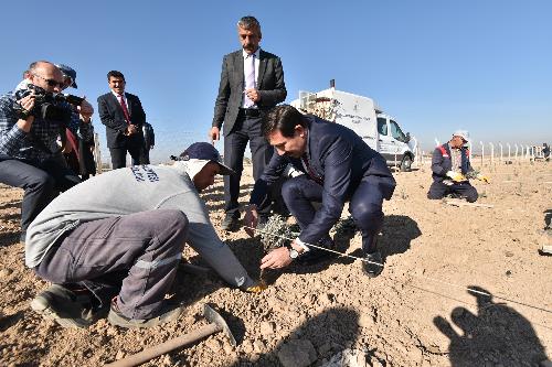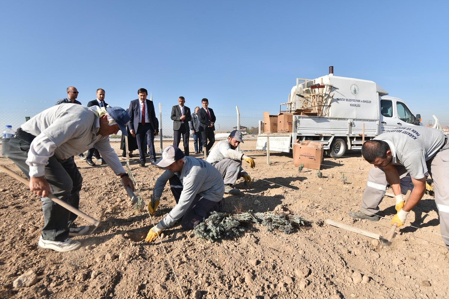 Karatay Belediyesi Park ve Bahçeler Müdürlüğü ekiplerinin lavanta fidesi dikim çalışmalarına katılarak lavanta diken Başkan Hasan Kılca, oluşturdukları Lavanta Bahçesi’ne 100 bin lavanta fidanı ekileceğini belirtti.