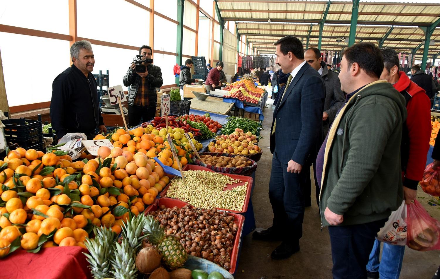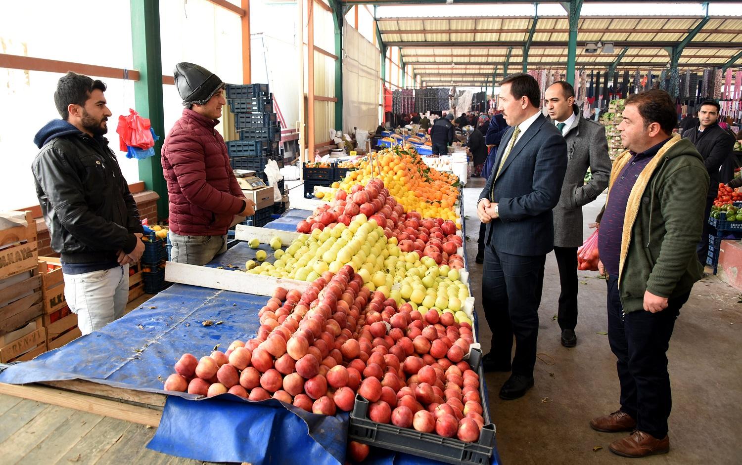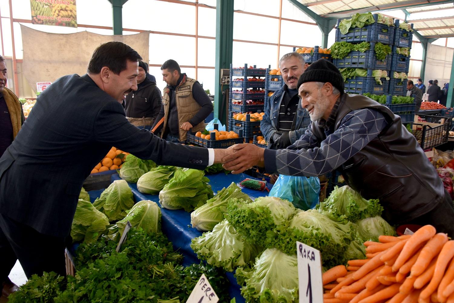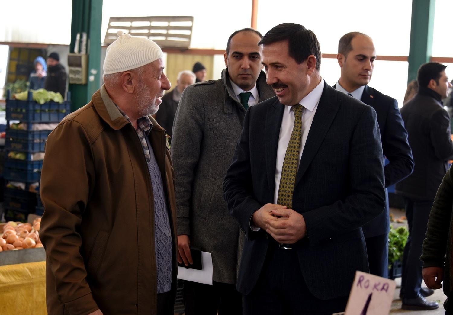 Esnaf ile kapalı pazaryerinde alışveriş yapan vatandaşların sorun ve taleplerini yerinde dinleyen Başkan Hasan Kılca, bölgede yürütülen çalışmalar hakkında da bilgi verdi.