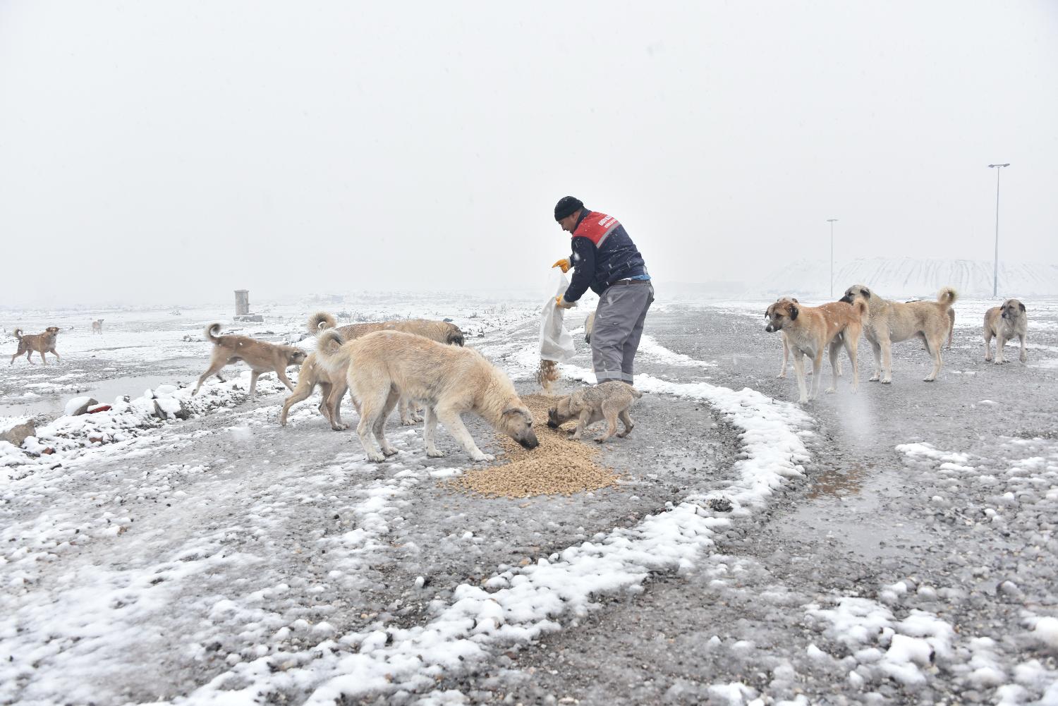 Karatay Belediyesi Veteriner İşleri Müdürlüğü ekipleri de kışın bu çetin şartlarında yabani ve sokak hayvanlarının yaşamlarına devam edebilmesi için ilçenin birçok noktasına kurduğu kedi ve köpek besleme istasyonlarına yem bırakıyor.