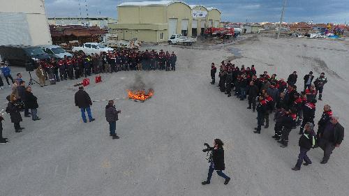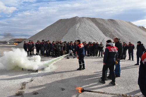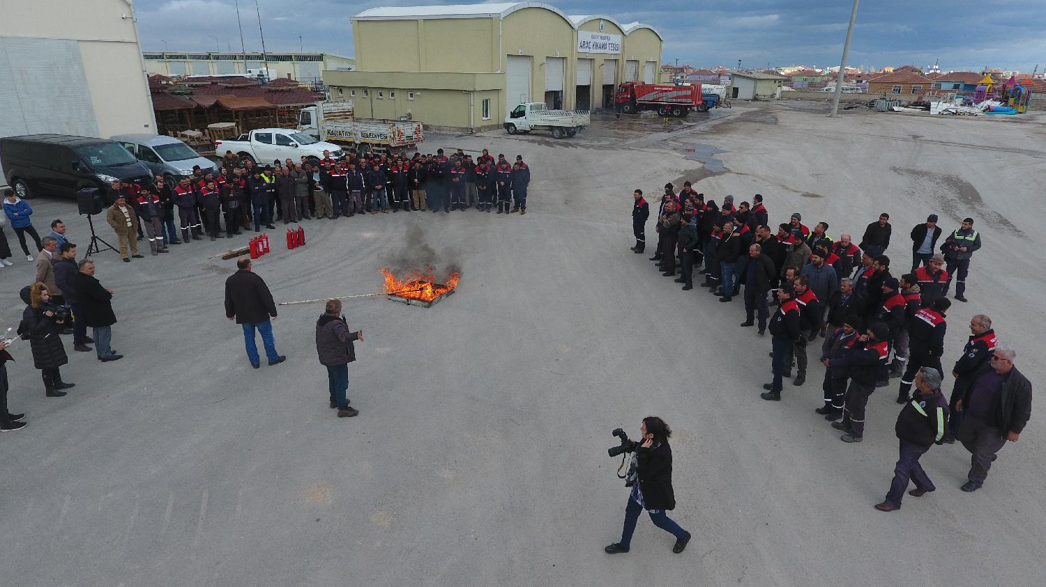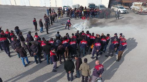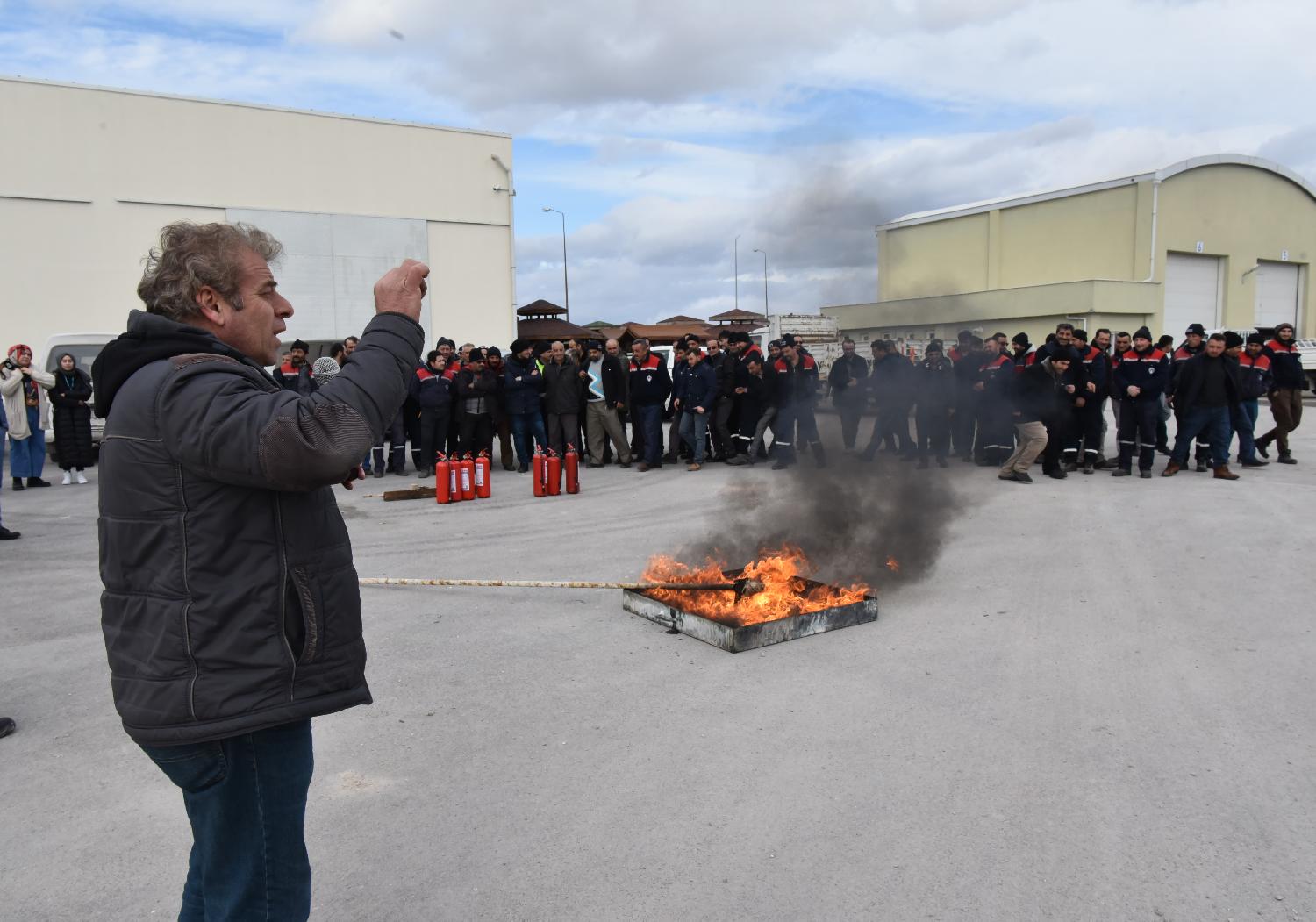 Çıkabilecek yangınlara karşı; müdahale, kurtarma, koruma ve ilk yardım ekiplerinin oluşturulması gerektiğine dikkat çekilen eğitimde, personele yangın söndürme cihazları tanıtılarak, kullanımı hakkında bilgiler verildi. Eğitimin ardından personele uygulamalı yangın tatbikatı yaptırıldı.