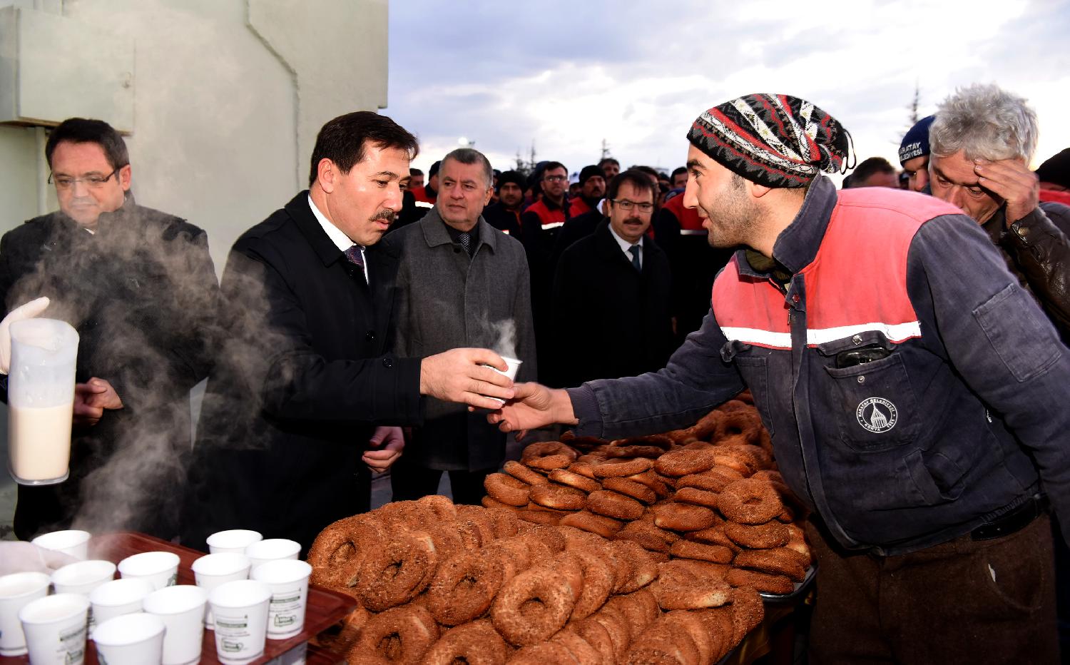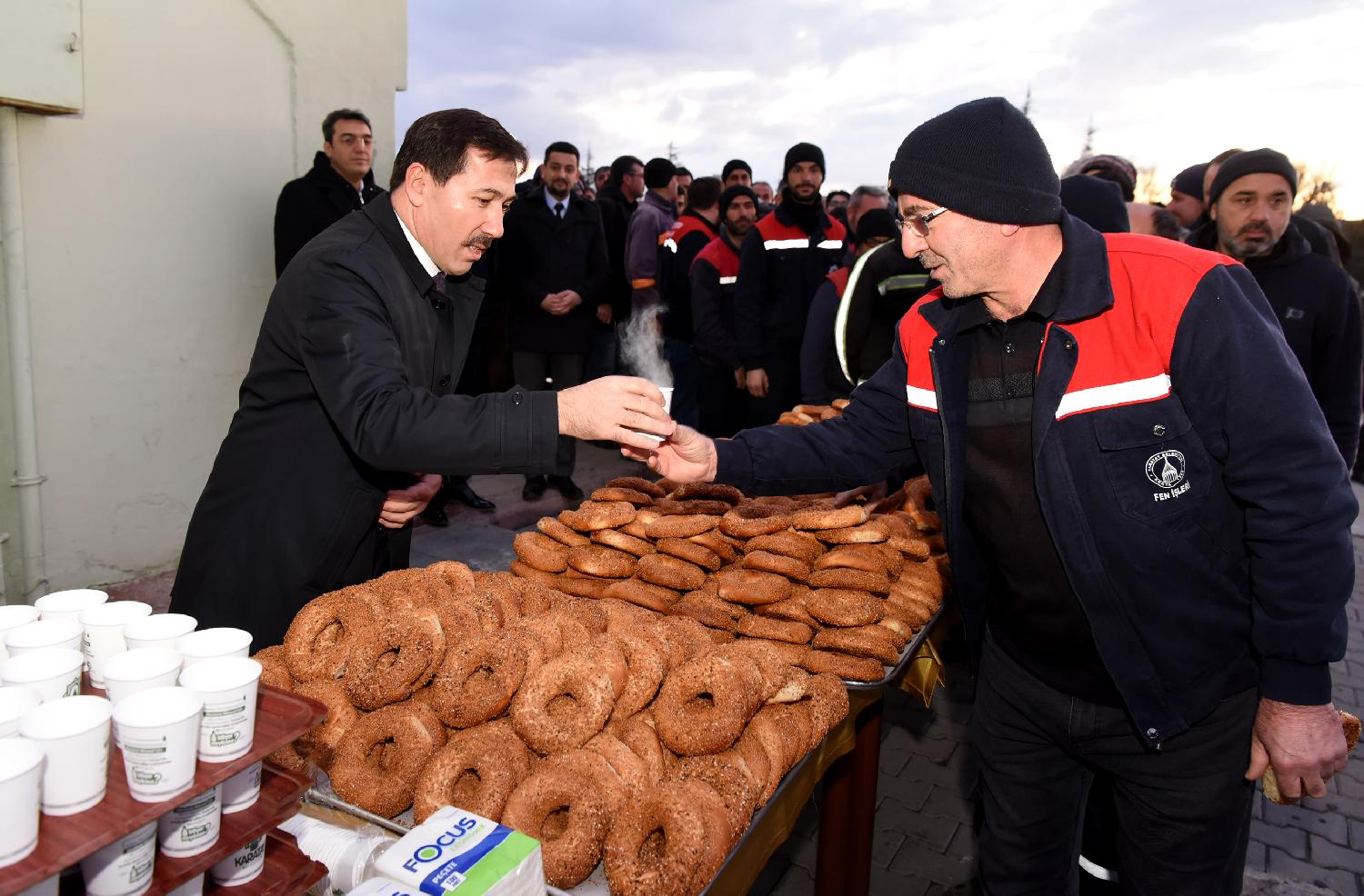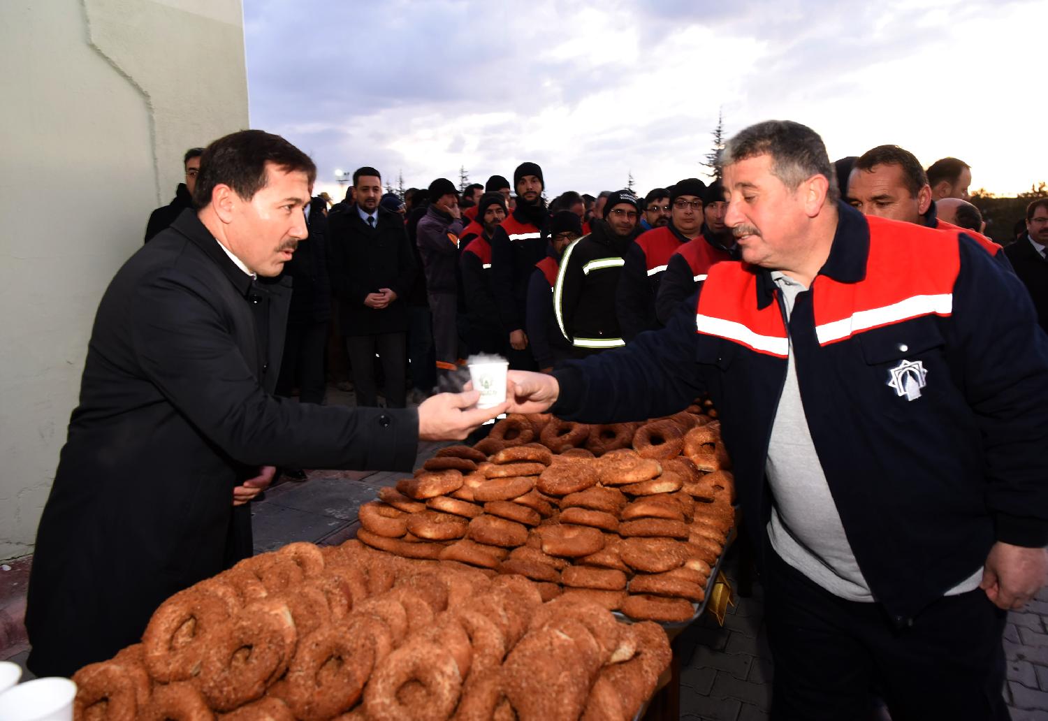 İşçilerin mesaisi öncesinde simit ve ballı süt eşliğindeki kahvaltıda personeliyle bir araya gelen Başkan Hasan Kılca, personelin istek, talep ve önerilerini de dinledi, işçilerle bir süre sohbet etti.