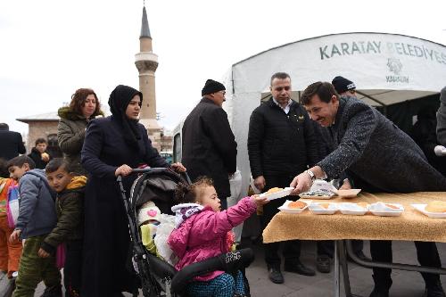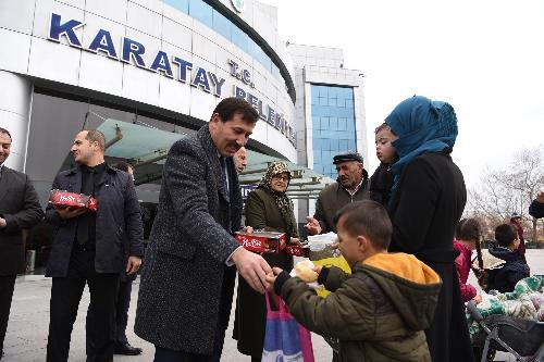 KARATAY BELEDİYESİ’NDEN VATANDAŞA PİŞİ İKRAMI, ESNAFA İSE KANDİL SİMİDİ