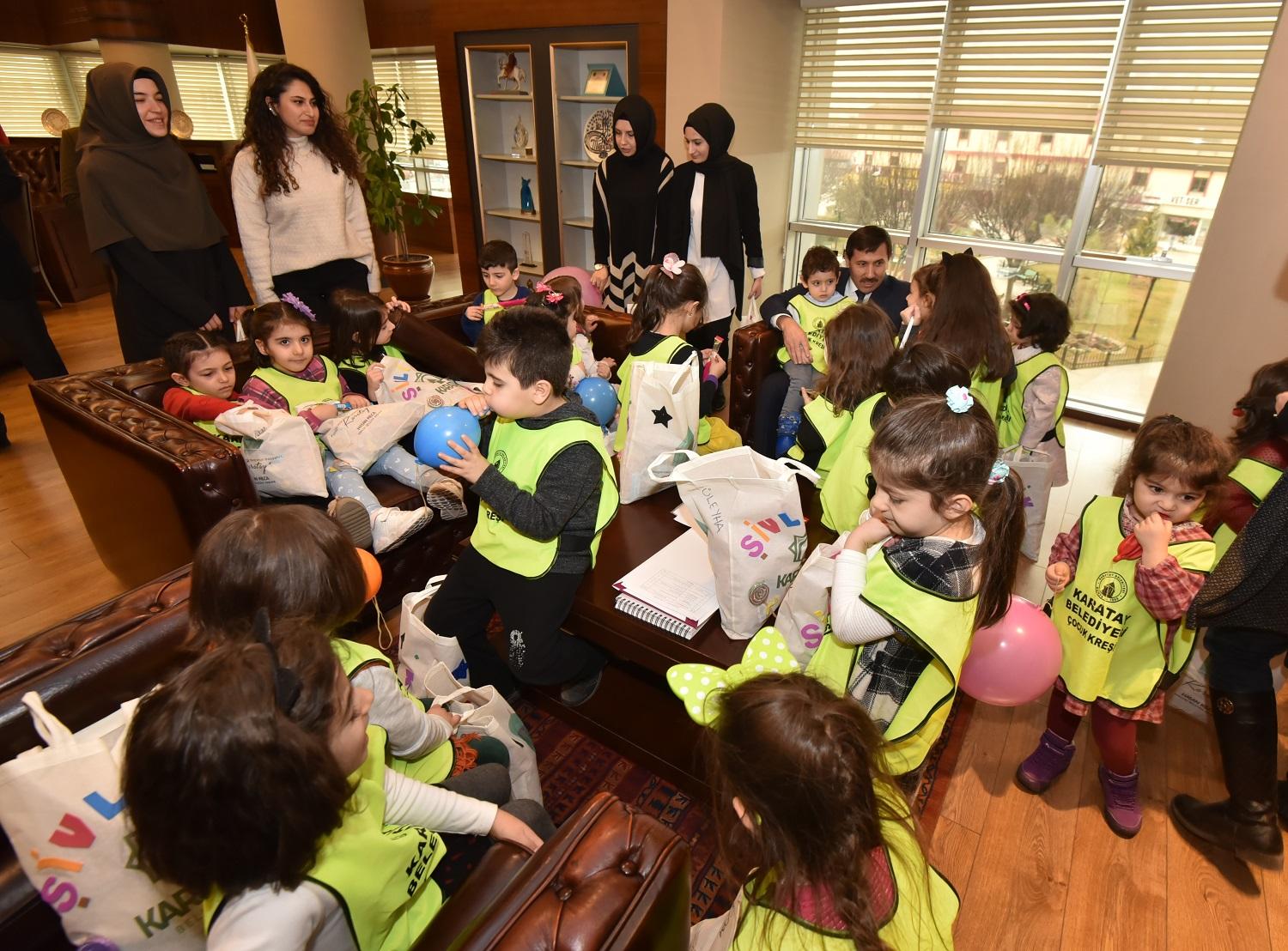 Başkan Hasan Kılca, sabahın erken saatlerinden itibaren belediyeye ve odasına gelen çocuklara Şivlilik dağıttı, Karataylı çocukların Şivlilik sevincine ortak oldu.