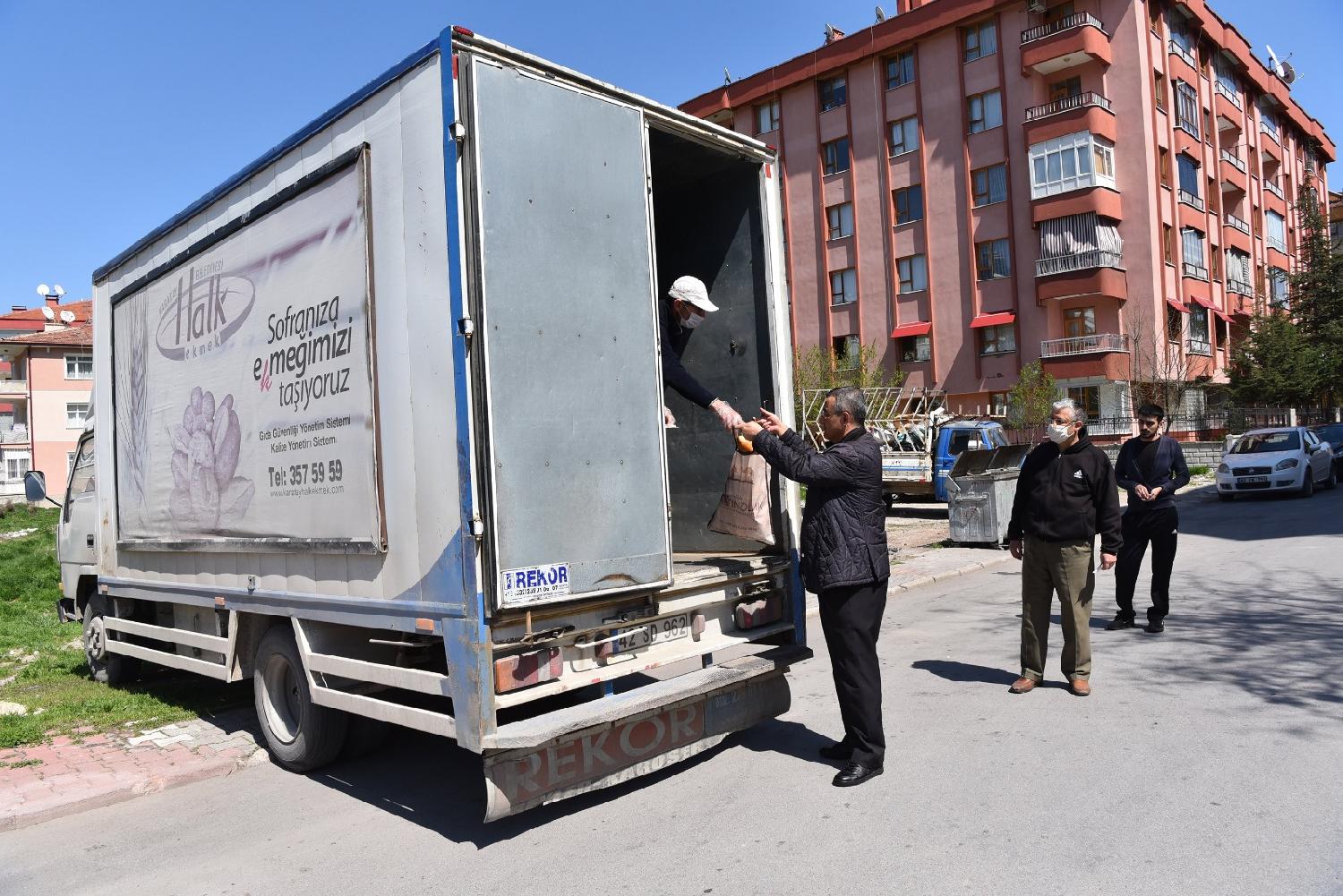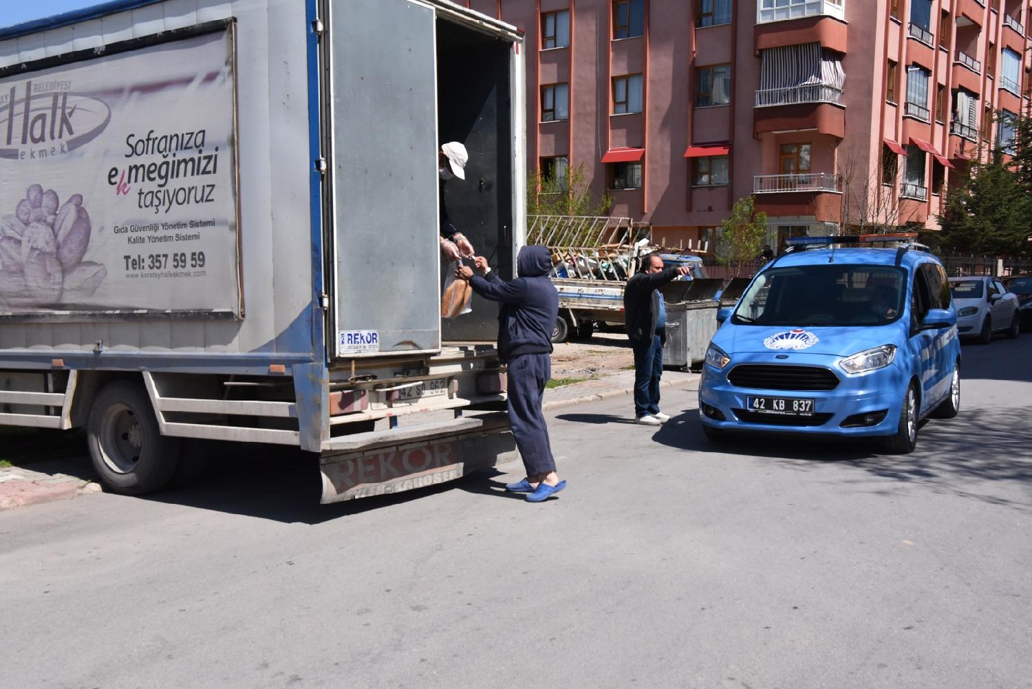 Karatay Belediyesi de vatandaşların en önemli ihtiyaçlarından birisi olan ekmeğin temini için 6 adet mobil halk ekmek aracıyla ilçe genelinde ekmek dağıtımına başladı.