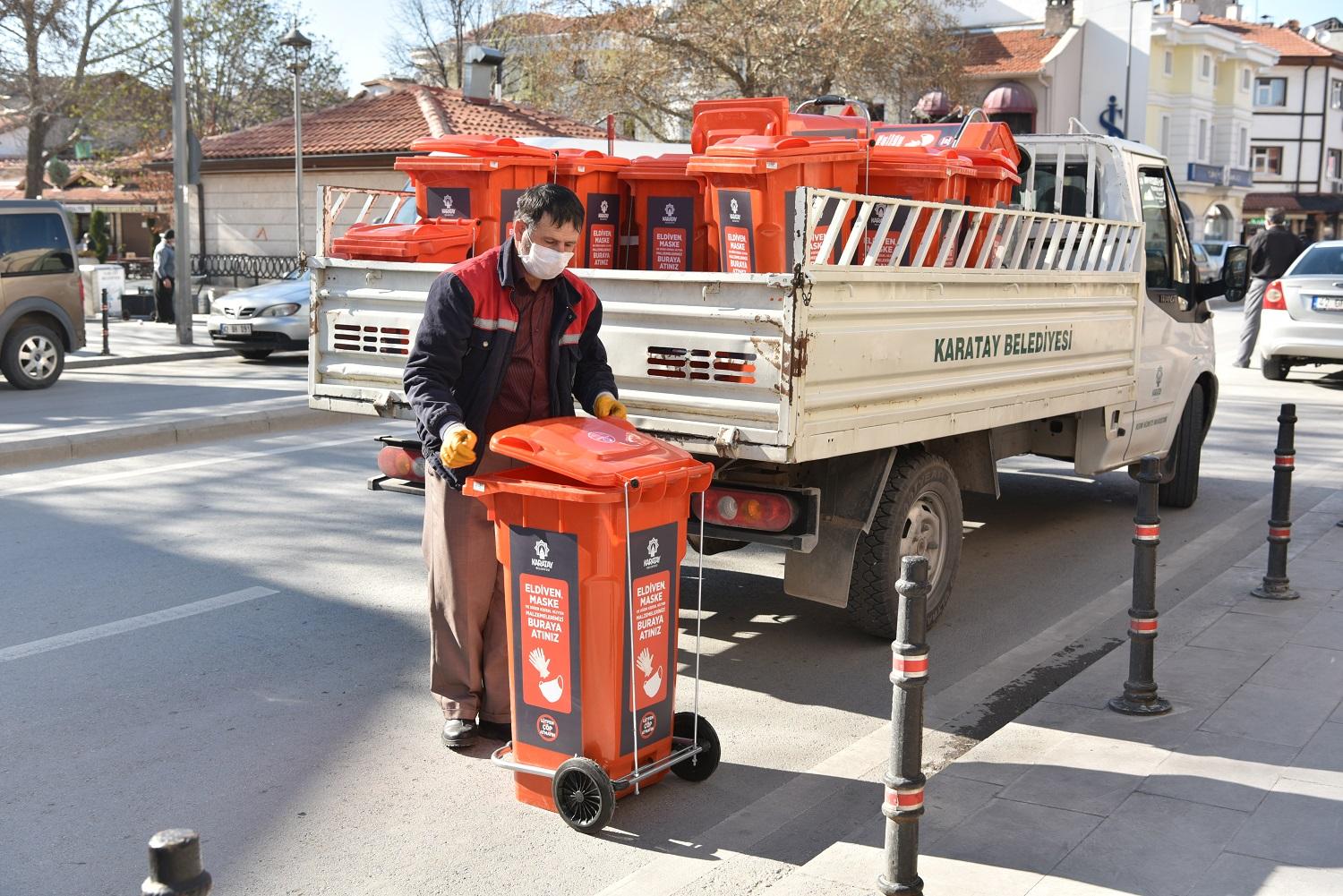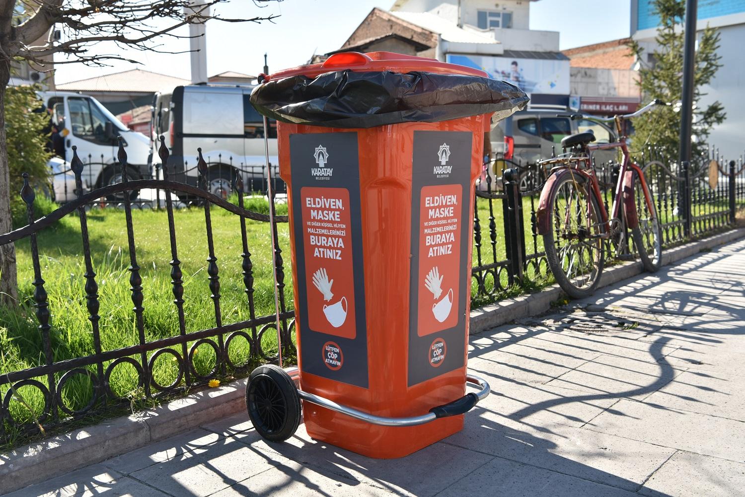 Bu önlemler kapsamında Karatay Belediyesi, tek kullanımlık maske, eldiven gibi hijyen malzeme atıklarının düzenli ve sağlığı tehdit etmesini önlemek amacıyla ilçenin çeşitli noktalarına özel tıbbi atık kutuları yerleştirdi.